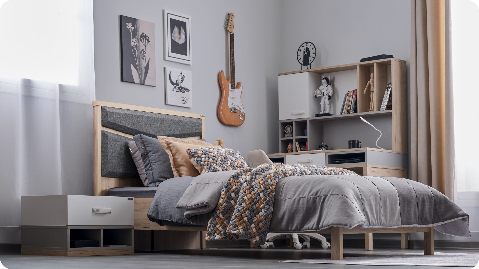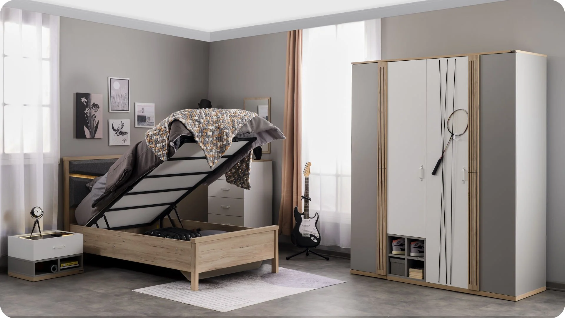 Χαρακτηριστικά προϊόντος: Μοριοσανίδα γενικής χρήσης με επένδυση μελαμίνης Σχέδιο με χάραξη λέιζερ στο υποπόδιο Στρογγυλεμένες, μαλακές γωνίες για προστασία από χτυπήματα και τραυματισμούς Διαθέτει αποθηκευτικό χώρο με μηχανισμό ασφαλείας, αμορτισέρ και κλειδαριά ασφαλείας Μέγιστη αντοχή βάρους: 130 κιλά Εσωτερική διάσταση στρώματος: 120 x 200 εκ. ή 120 x 200 εκ. Ισχυρή και ανθεκτική κατασκευή για χρήση πολλών ετών Ιδανικό για στρώμα διαστάσεων 100 x 200 εκ. και 120×200 εκ. , το κρεβάτι είναι κατάλληλο για ένα παιδικό ή εφηβικό δωμάτιο, συνδυάζοντας λειτουργικότητα και στυλ. Χαρακτηριστικά & Προνόμια Συμπεριλαμβάνονται Στην παραπάνω τιμή δεν περιλαμβάνεται η συναρμολόγηση.