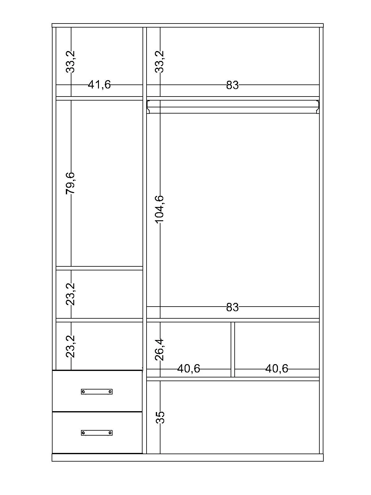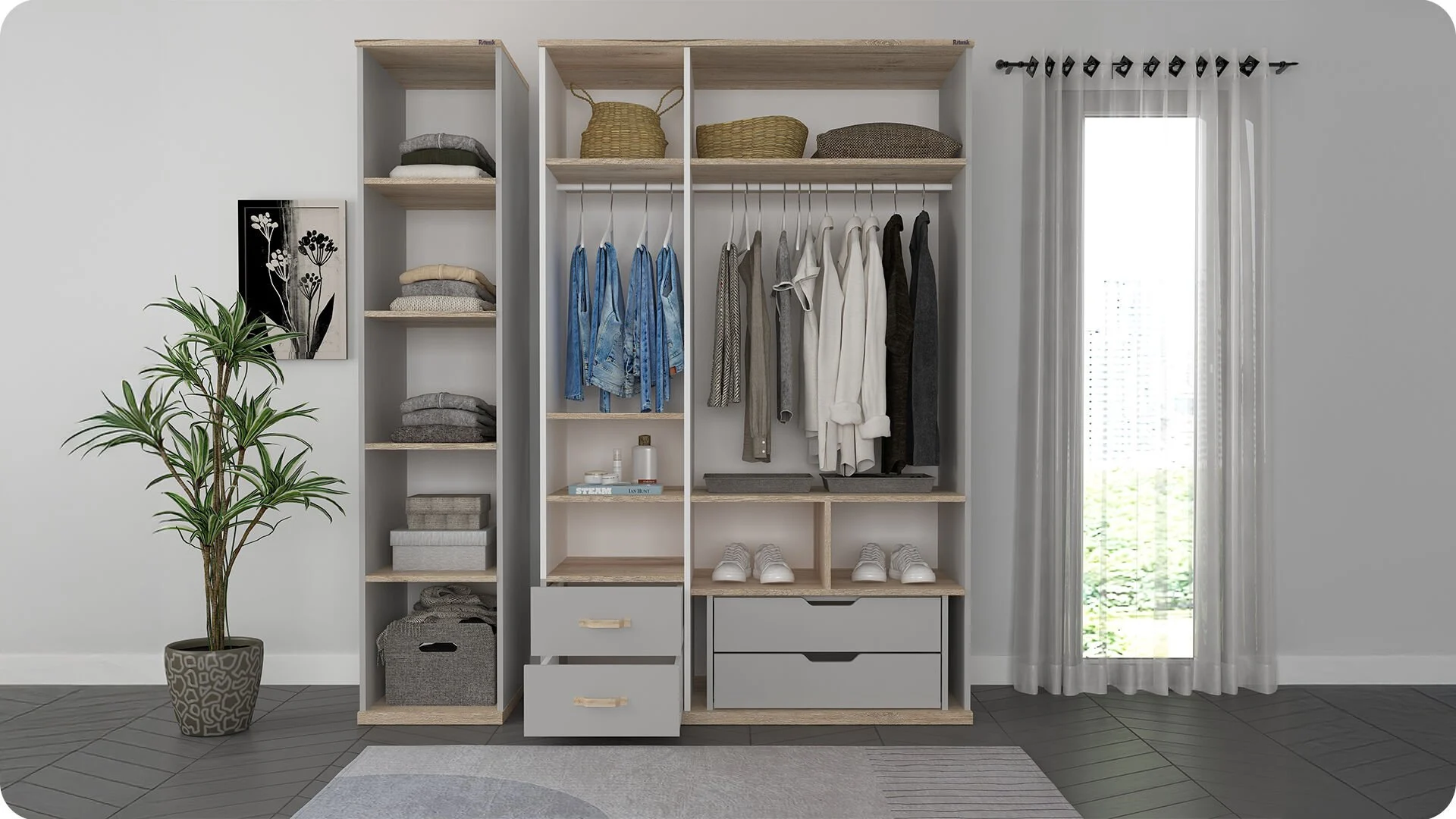 Με ευρύχωρους αποθηκευτικούς χώρους, κρεμάστρες, ράφια και δύο συρτάρια στη βάση, προσφέρει πρακτικότητα για ρούχα και αξεσουάρ.