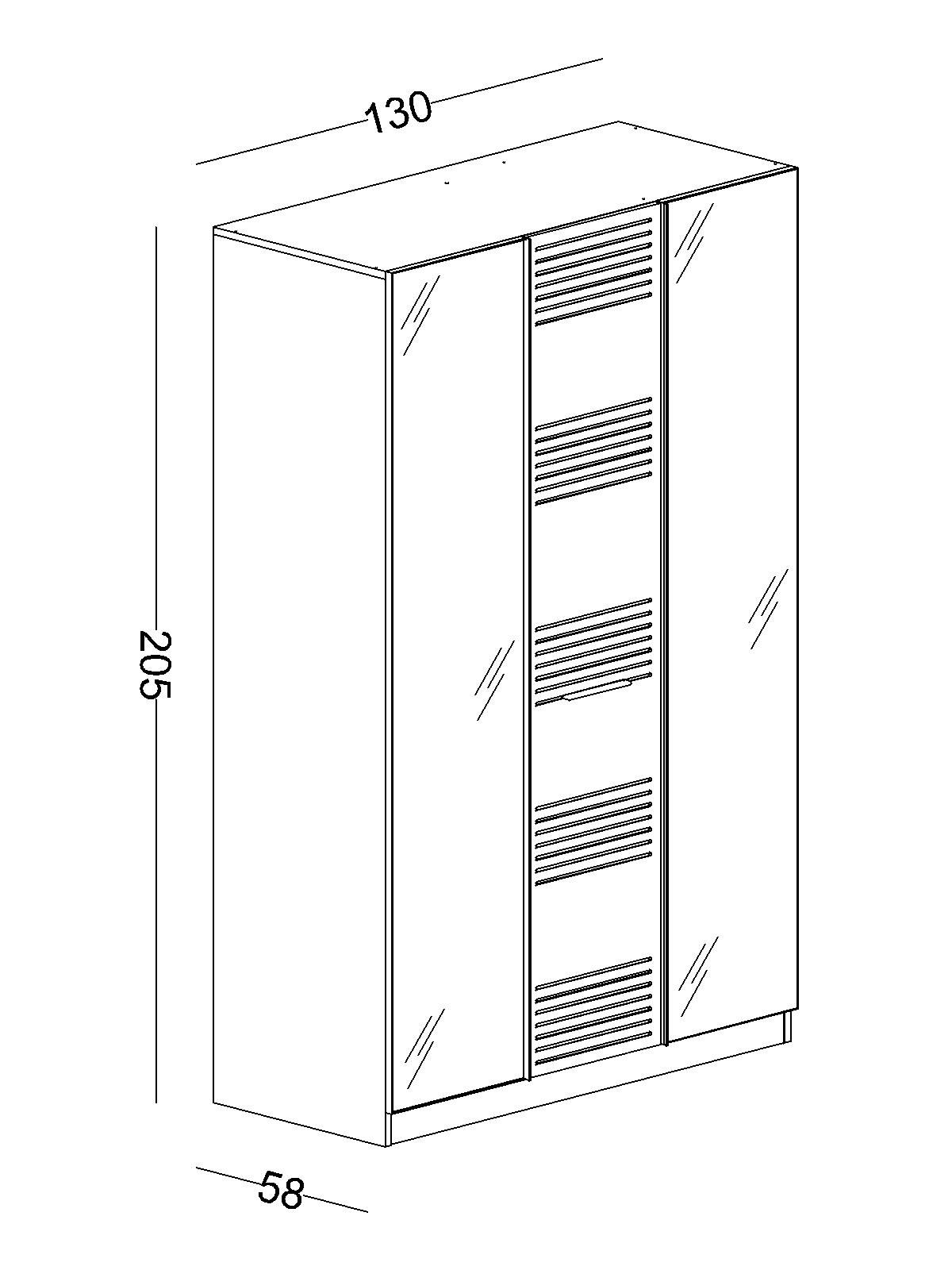 Τρίφυλλη ντουλάπα με γυάλινη πόρτα Twin