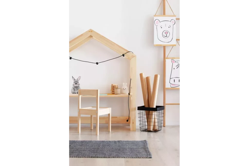 - Αποθηκευτικός Χώρος: Διαθέτει συρτάρι και ντουλάπι με διακοσμητικές περσίδες για την αποθήκευση βιβλίων, τετραδίων και προσωπικών αντικειμένων.
