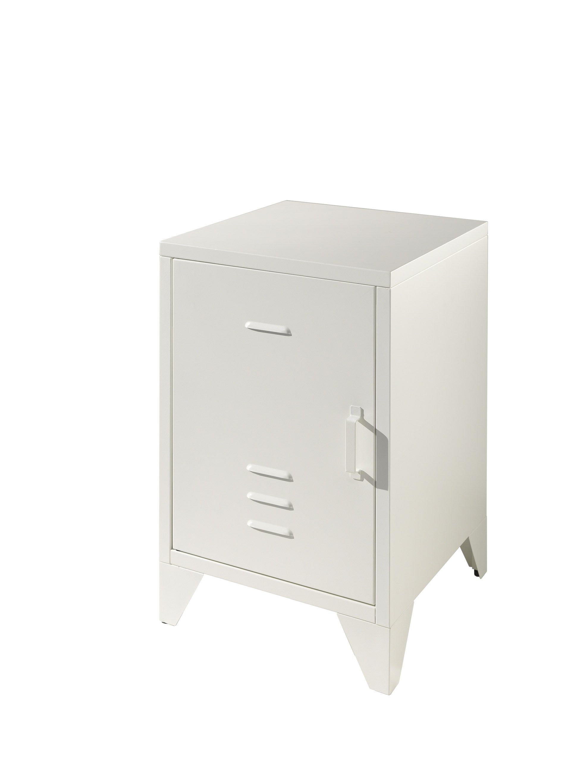 Αυτό το κομοδίνο BRONXX σε λευκό χρώμα είναι κατασκευασμένο από μέταλλο. Το ματ λευκό φινίρισμά του δίνει μια βιομηχανική εμφάνιση. Στο εσωτερικό, το κομοδίνο διαθέτει δύο ράφια για την αποθήκευση προσωπικών αντικειμένων.
