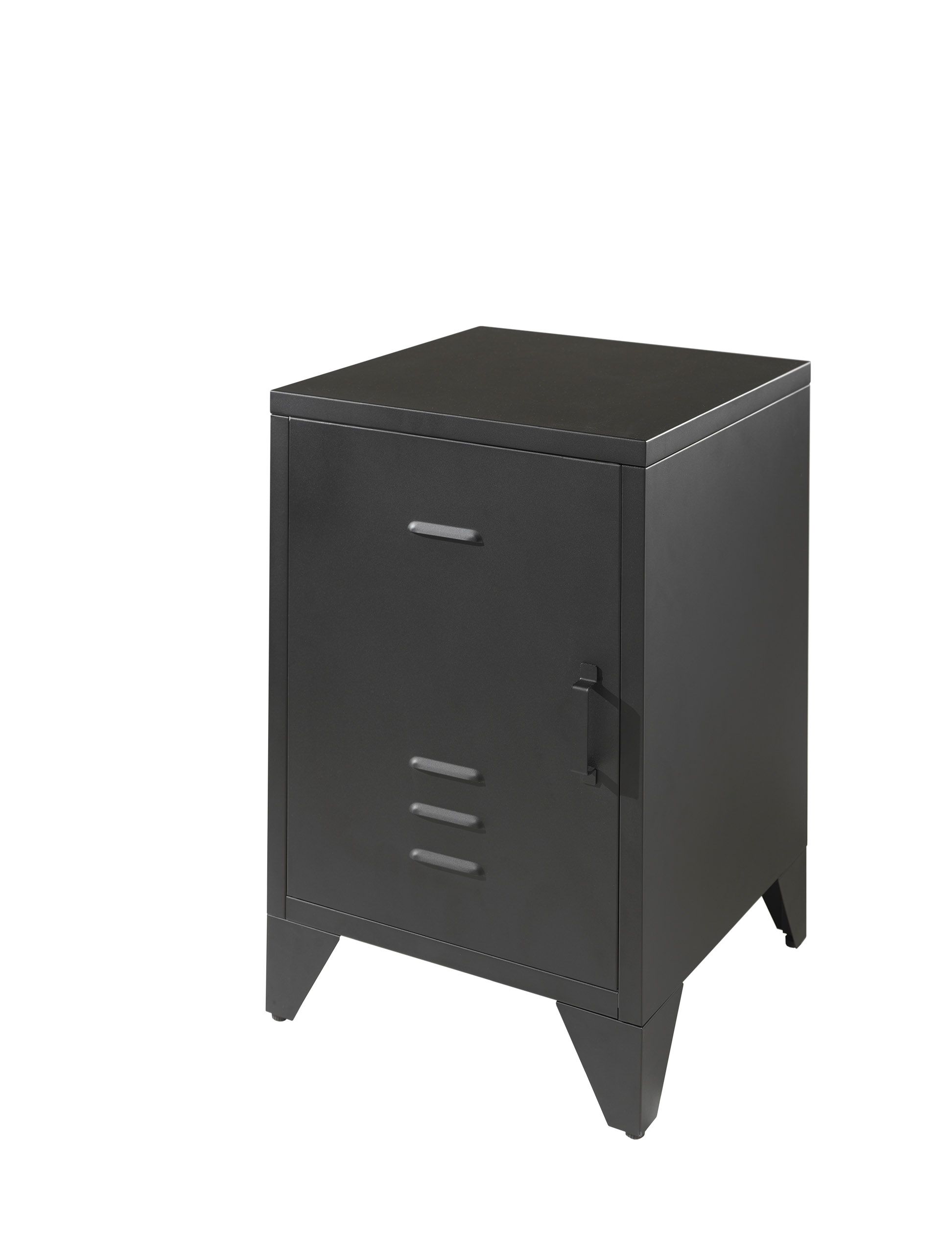 Αυτό το κομοδίνο BRONXX σε Μαύρο χρώμα είναι κατασκευασμένο από μέταλλο. Το ματ μαυρο φινίρισμά του δίνει μια βιομηχανική εμφάνιση. Στο εσωτερικό, το κομοδίνο διαθέτει δύο ράφια για την αποθήκευση προσωπικών αντικειμένων.