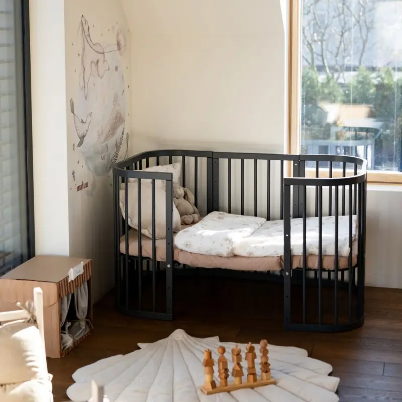 Το 7-σε-1 οβάλ βρεφικό κρεβάτι δημιουργήθηκε με στόχο να καλύψει τις ανάγκες των γονέων που αναζητούν ένα όμορφο και χρήσιμο έπιπλο το οποίο μπορεί να χρησιμοποιηθεί για πολλά χρόνια και όχι μόνο για μερικούς μήνες. Το προϊόν μας αποδεικνύει ότι η λειτουργικότητα και η αντοχή μπορούν να συμβαδίζουν.
