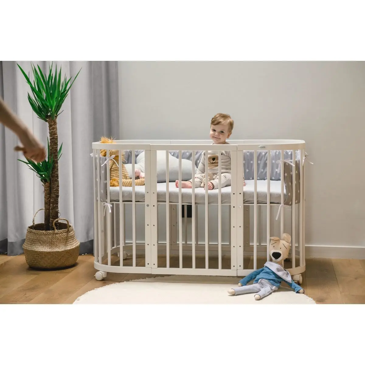 Το 7-σε-1 οβάλ βρεφικό κρεβάτι δημιουργήθηκε με στόχο να καλύψει τις ανάγκες των γονέων που αναζητούν ένα όμορφο και χρήσιμο έπιπλο το οποίο μπορεί να χρησιμοποιηθεί για πολλά χρόνια και όχι μόνο για μερικούς μήνες. Το προϊόν μας αποδεικνύει ότι η λειτουργικότητα και η αντοχή μπορούν να συμβαδίζουν.