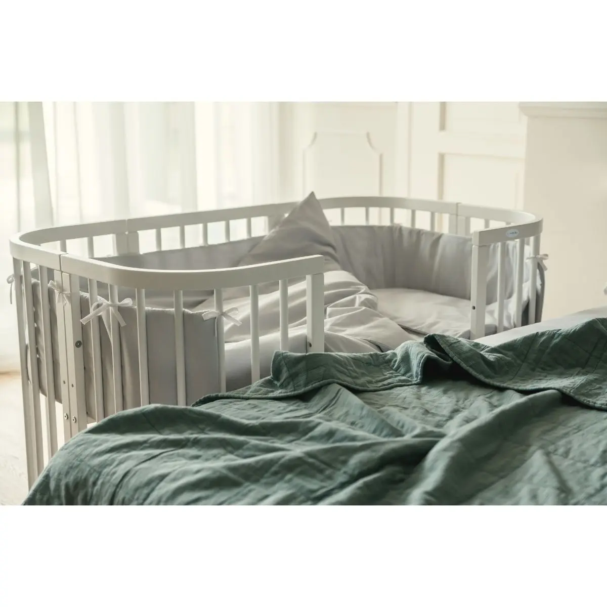 Το 7-σε-1 οβάλ βρεφικό κρεβάτι είναι το αποτέλεσμα πολυετούς εμπειρίας και εργασίας. Είναι κατασκευασμένο από ξύλο οξιάς, το οποίο χαρακτηρίζεται από την αντοχή και την ελαφρότητά του. Αυτή η παιδική επίπλωση θα αποτελέσει το κύριο διακοσμητικό στοιχείο του εσωτερικού χώρου, προσφέροντας παράλληλα λειτουργικότητα και ασφάλεια για τον ήρεμο ύπνο του μικρού σας.