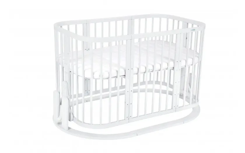 Η βάση κουνήματος είναι μια εξαιρετική προσθήκη στο κρεβάτι 7 σε 1. Ταιριάζει τόσο σε τετράγωνα όσο και σε οβάλ κρεβάτια. Ένα απαλό σπρώξιμο προκαλεί το λίκνισμα του κρεβατιού “πλάγια”. Κατά τη συναρμολόγηση του λίκνου σε κρεβάτι 7 σε 1, θυμηθείτε ότι το κρεβάτι πρέπει να είναι “χωρίς ροδάκια”. Σημείωση: Το λίκνο δεν είναι κινητό, μην μετακινείτε το κρεβάτι όταν το λίκνο έχει ήδη εγκατασταθεί. Λεπτομερείς πληροφορίες: