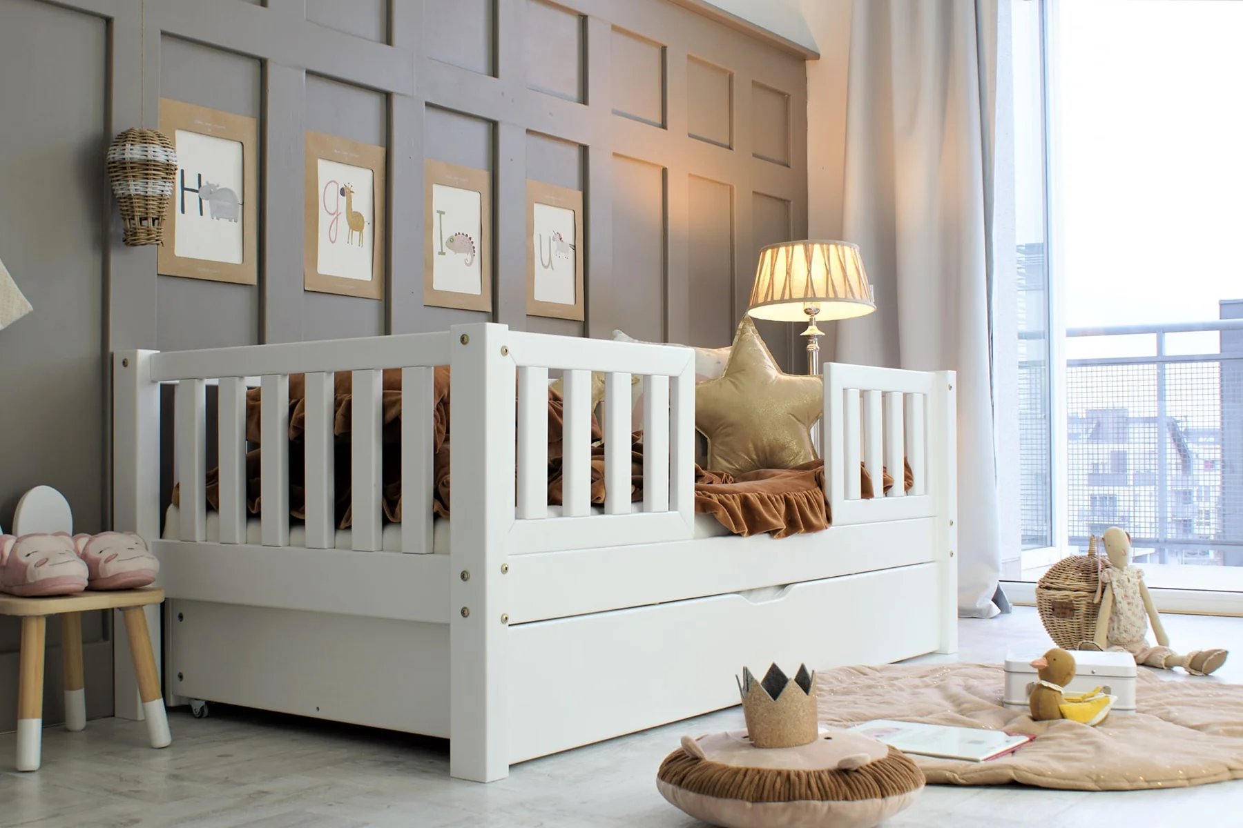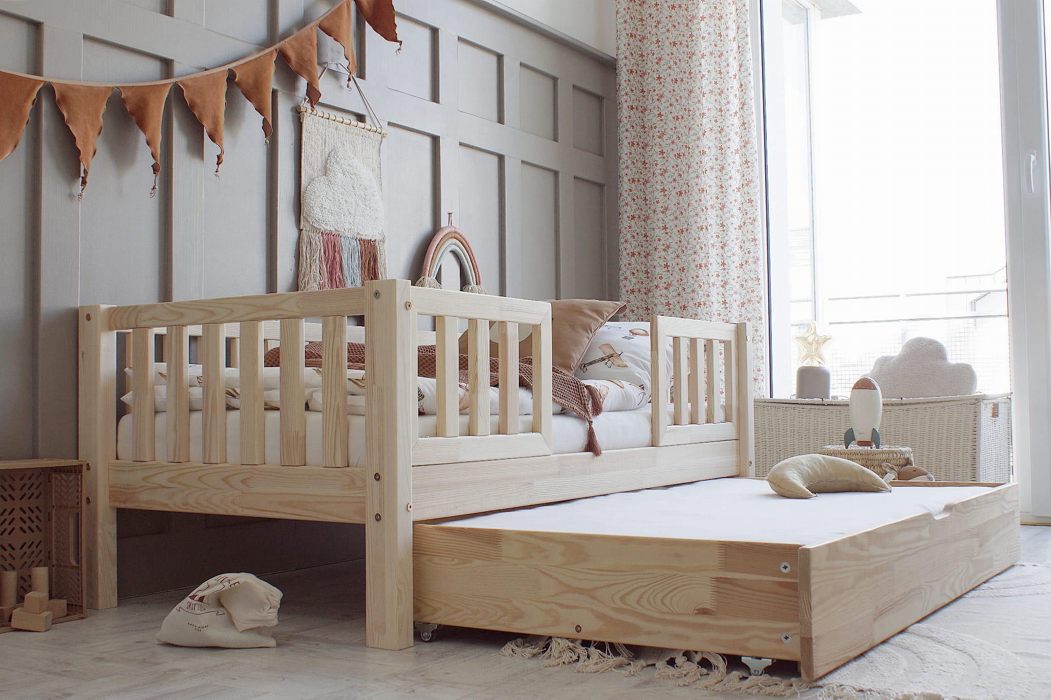 Basic Love PLUS DUO κρεβάτι μασίφ με συρόμενο συρτάρι / αποθηκευτικό χώρο Λαμβάνοντας υπόψη ένα στρώμα κρεβατιού με πάχος 10 εκ., το παιδί κοιμάται σε ύψος 37 εκ.. Το μήκος των ποδιών του κρεβατιού είναι 19 εκ. Στη φωτογραφία του προϊόντος, υπάρχει ένα στρώμα πάχους 10 εκ.. Εάν επιλέξετε διάσταση 160×80 θα παραλάβετε το κρεβάτι με ένα ενιαίο συρτάρι, ενώ για μεγαλύτερες διαστάσεις θα παραλάβετε 2 συρτάρια! Κάντε δικό σας αυτό το εξαιρετικό κρεβάτι και δώστε μια αίσθηση μαγείας στον χώρο σας.
