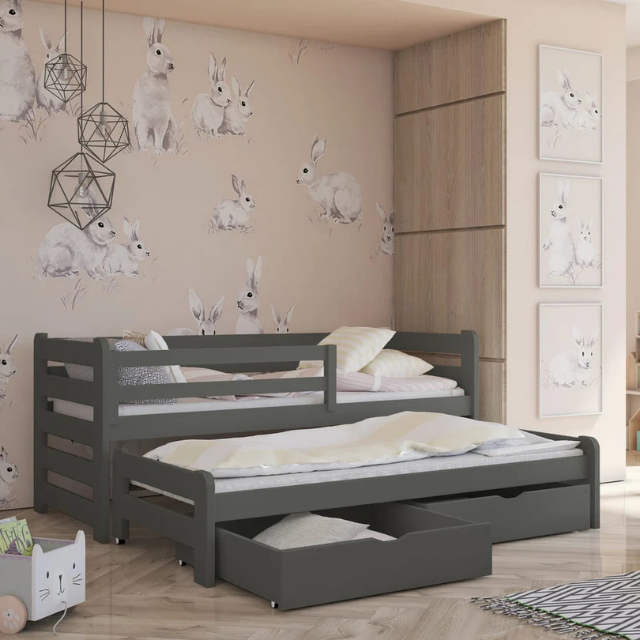 Κρεβάτι Billy – Με συρόμενο κρεβάτι και συρτάρια! Χάρη στο αυτόνομο συρόμενο κρεβάτι με ροδάκια, μπορείτε να εξοικονομήσετε πολύ χώρο στο δωμάτιο. Μια πολύ καλή λύση όταν θέλετε να έχετε ένα επιπλέον μέρος για ύπνο για έναν φίλο, τον παππού ή τη γιαγιά ή τον μπαμπά και τη μαμά όταν είναι το μικρό σας άρρωστο ή όταν απλά θέλετε να του κάνετε παρέα ή να του διαβάσετε ένα παραμύθι για να αποκοιμηθεί. Υλικό: Μπορείτε να επιλέξετε ένα χρώμα ή διχρωμία. Είναι περασμένη τρεις φορές με βερνίκι που δεν λεκιάζει.