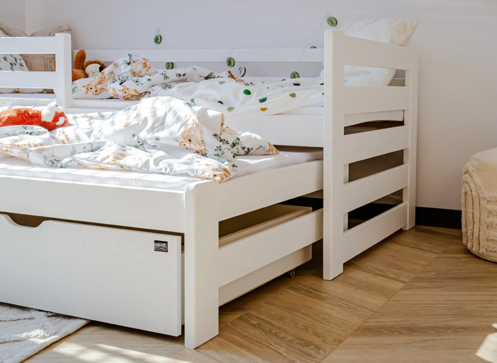 Το κουκέτα SENSO της Lano Meble είναι μια πρακτική και κομψή λύση για κοινόχρηστο παιδικό δωμάτιο. Πρόκειται για ένα χαμηλό κρεβάτι κουκέτα με αναδιπλούμενο δεύτερο επίπεδο, που εξοικονομεί χώρο και ταιριάζει ιδανικά ακόμα και σε μικρά δωμάτια. Χάρη στον απλό και διαχρονικό σχεδιασμό του, εντάσσεται εύκολα σε κάθε στυλ διακόσμησης. Η έξυπνη ανασυρόμενη βάση μετατρέπει το κρεβάτι από απλό μέρος ξεκούρασης σε λειτουργική λύση διπλού ύπνου, ιδανική για αδέλφια. Μπορεί επίσης να χρησιμοποιηθεί σαν χώρος παιχνιδιού ή χαλάρωσης κατά τη διάρκεια της ημέρας. ✅ Ιδανικό για αδέλφια – Δύο επίπεδα ύπνου, εξοικονόμηση χώρου και πρακτική χρήση. ✅ Ασφαλές για παιδιά – Με προστατευτικό κάγκελο στο επάνω επίπεδο. ✅ Κατασκευή από φυσικό ξύλο – Ανθεκτικό πεύκο για σταθερότητα και μακροχρόνια χρήση. ✅ Αντοχή και άνεση – Τελάρα FLEX από ξύλο σημύδας για βέλτιστη υποστήριξη. ✅ Προαιρετικά συρτάρια – Επιλογή για 2 ευρύχωρα συρτάρια για αποθήκευση. ✅ Εξατομικευμένη επιλογή στρωμάτων – Δυνατότητα επιλογής διαφορετικών τύπων στρωμάτων ανάλογα με τις ανάγκες κάθε παιδιού.