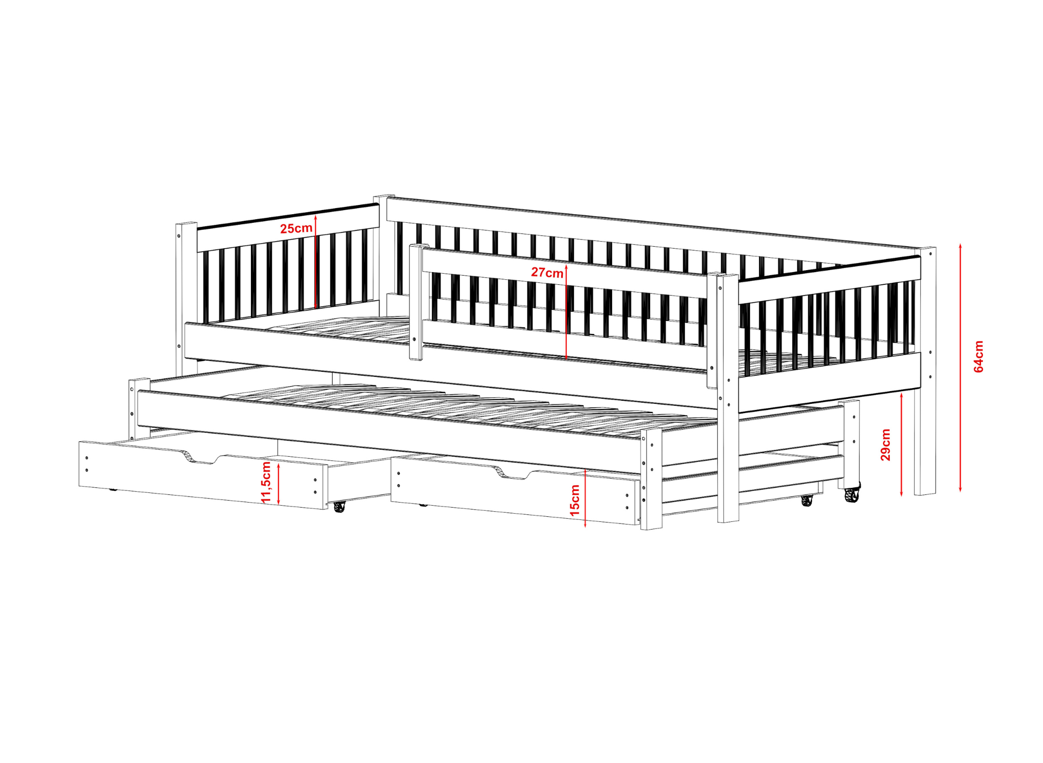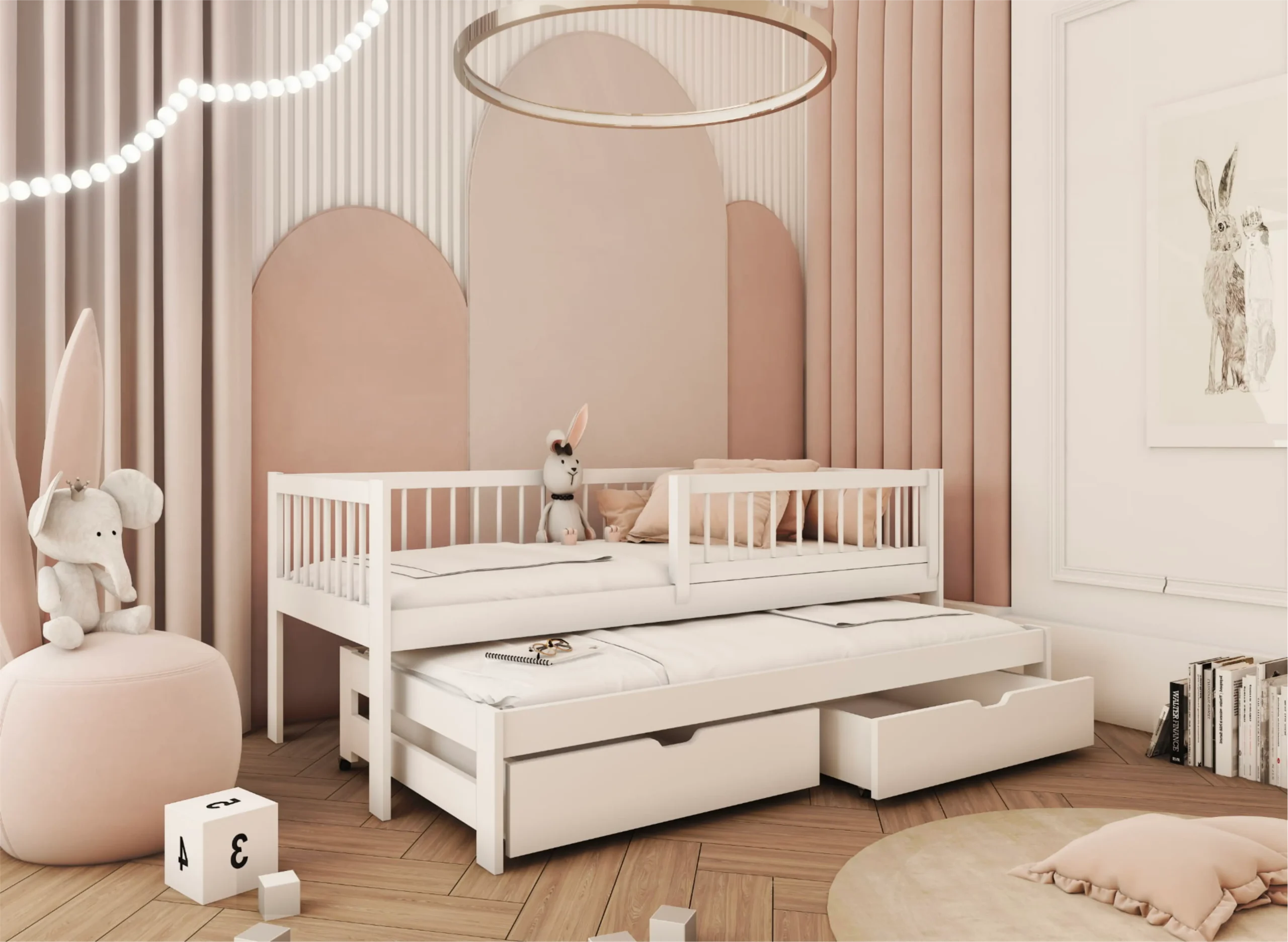 Η έξυπνη ανασυρόμενη βάση μετατρέπει το κρεβάτι από απλό μέρος ξεκούρασης σε λειτουργική λύση διπλού ύπνου, ιδανική για αδέλφια. Μπορεί επίσης να χρησιμοποιηθεί σαν χώρος παιχνιδιού ή χαλάρωσης κατά τη διάρκεια της ημέρας.