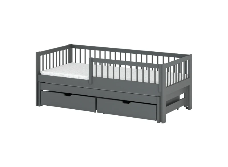 Η κουκέτα SOFTI της Lano Meble είναι μια πρακτική και κομψή λύση για κοινόχρηστο παιδικό δωμάτιο. Πρόκειται για ένα χαμηλό κρεβάτι κουκέτα με αναδιπλούμενο δεύτερο επίπεδο, που εξοικονομεί χώρο και ταιριάζει ιδανικά ακόμα και σε μικρά δωμάτια. Χάρη στον απλό και διαχρονικό σχεδιασμό του, εντάσσεται εύκολα σε κάθε στυλ διακόσμησης.