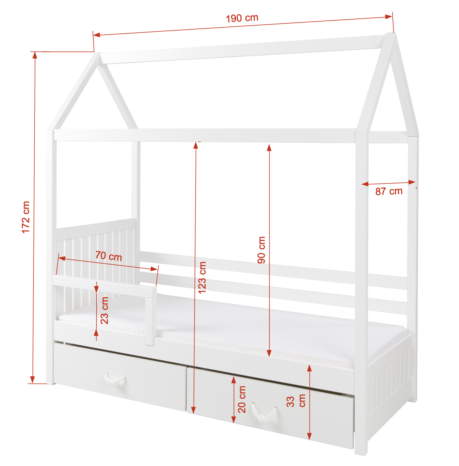 Το κρεβάτι Rozalia είναι το πιο όμορφο κρεβάτι σπιτάκι της αγοράς! Εχει κάγκελο στη μία πλευρά, ψηλό κεφαλάρι και συρτάρια για επιπλέον αποθηκευτικό χώρο!! Διακοσμήστε το όπως θέλετε και κάντο το μοναδικό!! Υλικό: Μπορείτε να επιλέξετε ένα χρώμα ή διχρωμία. Είναι περασμένη τρεις φορές με βερνίκι που δεν λεκιάζει. Περιλαμβάνει δύο μεγάλα συρτάρια αποθήκευσης με ροδάκια. – Τα στρώματα δεν περιλαμβάνονται (πωλούνται ξεχωριστά) Διαστάσεις κρεβατιου 180Χ80 Εξωτερικές διαστάσεις κρεβατιού (Μ/Β/Υ) 190x87x172cm Ύψος κάγκελου 23cm Διαστάσεις κρεβατιου 200Χ90 Εξωτερικές διαστάσεις κρεβατιού (Μ/Β/Υ) 210x97x172cm Μέγιστο βάρος 120 κιλά!