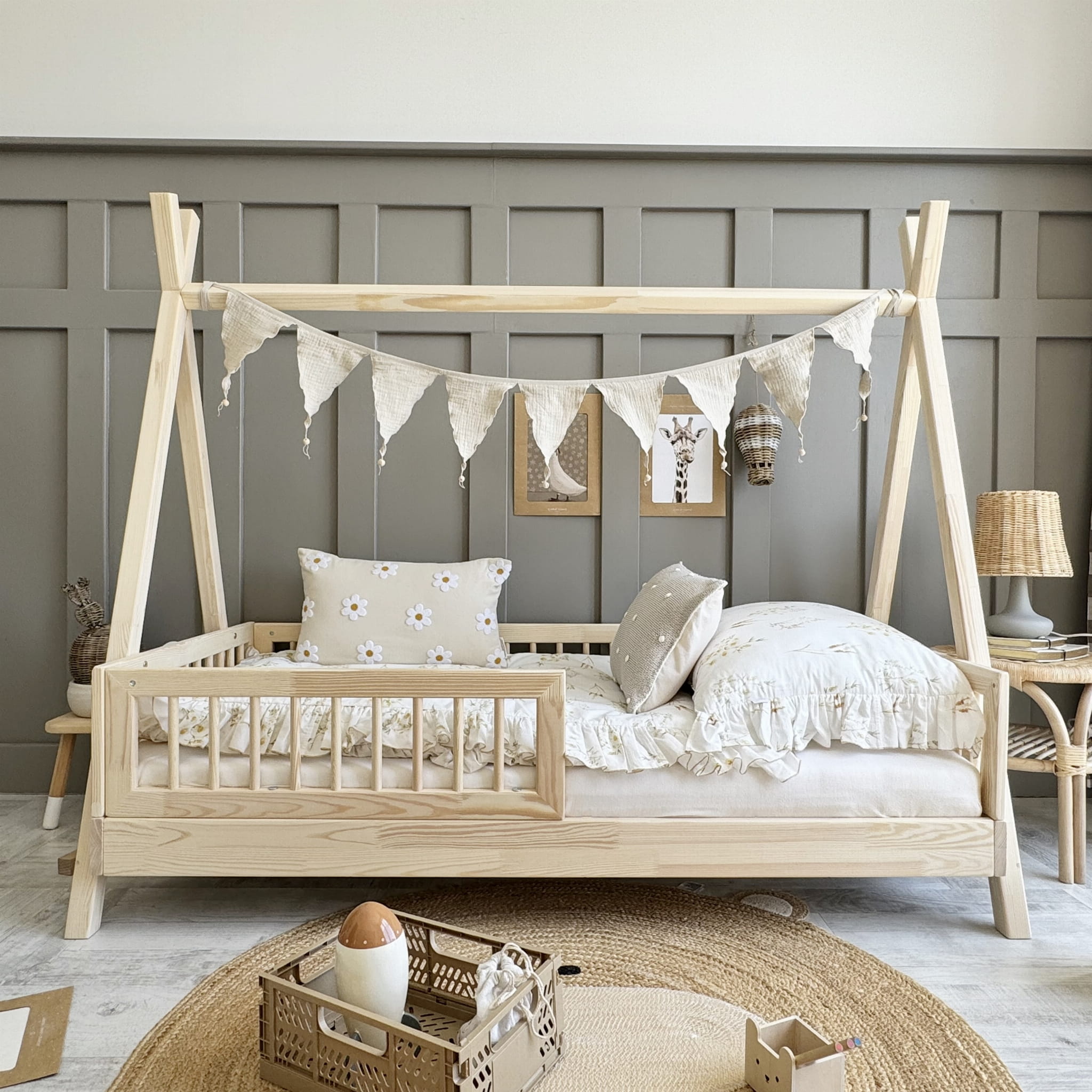 Tipi Montessori with rung rail παιδικό κρεβάτι φυσικό ξύλο