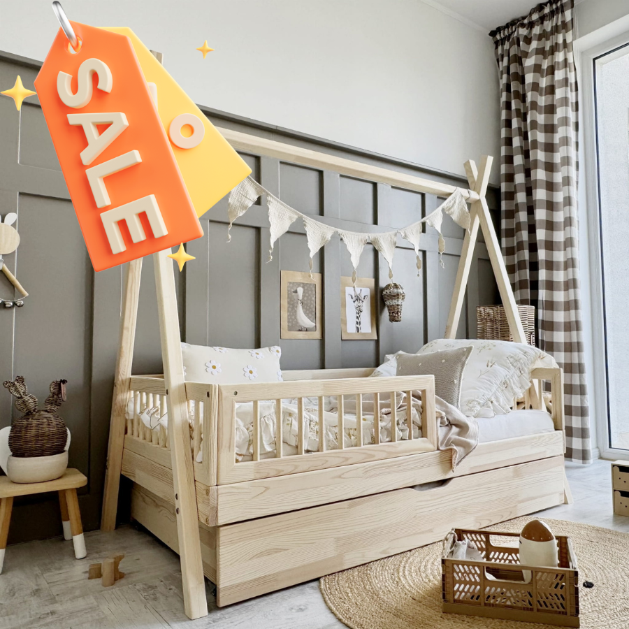 Tipi Plus παιδικό κρεβάτι φυσικό ξύλο μασίφ με συρτάρι.