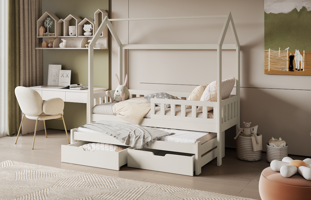 Tobi 2 ατόμων Σπιτάκι κρεβάτι ΜΑΣΙΦ με Αφαιρούμενη σκεπή και συρόμενο