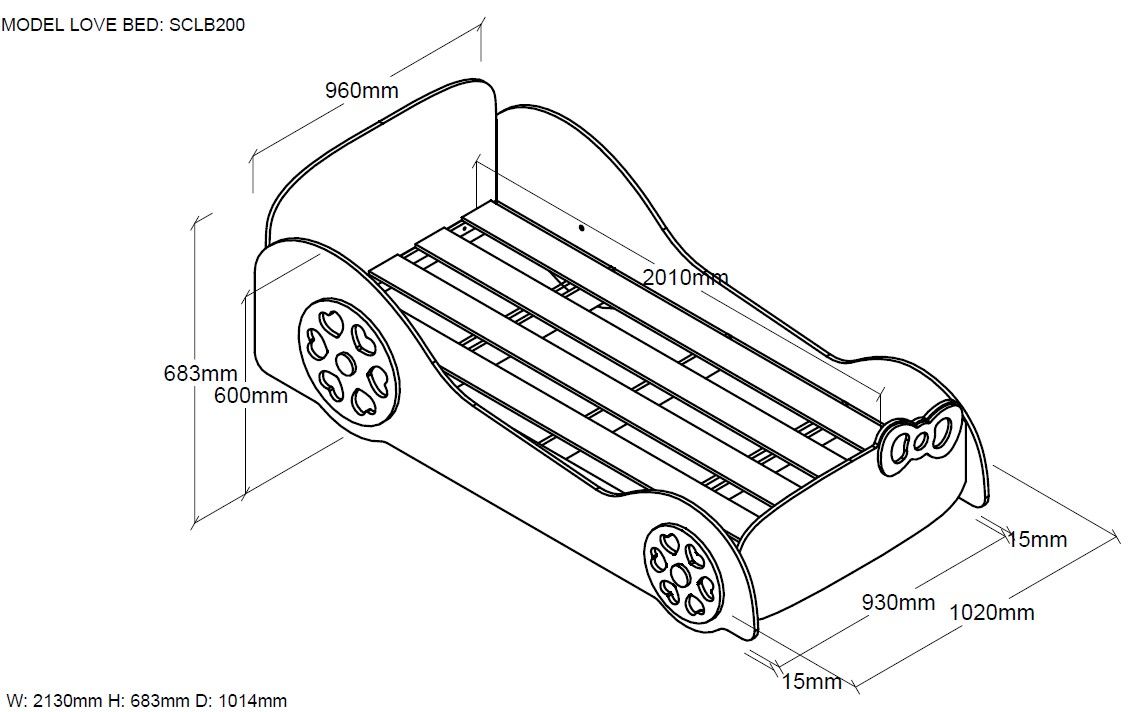 Το κρεβάτι LOVE CAR είναι κατασκευασμένο από ροζ λακαρισμένο MDF.