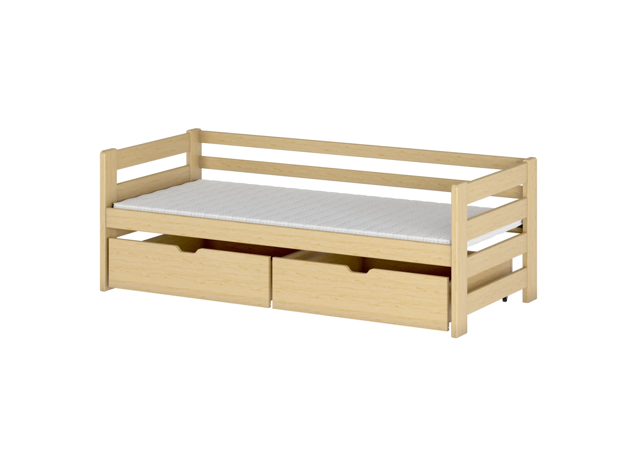 Παιδικό Κρεβάτι ERGO– Ιδανικό για μικρά παιδιά Το ERGO είναι ένα χαμηλό παιδικό κρεβάτι, εμπνευσμένο από τη φιλοσοφία Montessori, σχεδιασμένο για να προσφέρει ασφάλεια και αυτονομία στο παιδί σας. Με χαμηλή κατασκευή που επιτρέπει την εύκολη πρόσβαση χωρίς βοήθεια και αποσπώμενα προστατευτικά κάγκελα, ενθαρρύνει τη σταδιακή ανεξαρτητοποίηση του παιδιού. Κατασκευασμένο από φυσικό πεύκο και βαμμένο με πιστοποιημένα, οικολογικά χρώματα νερού, εξασφαλίζει ανθεκτικότητα και ασφάλεια. Το κρεβάτι είναι κατάλληλο για στρώμα διαστάσεων 80×160 έως 90×200 εκ (μέγιστο ύψος 17 εκ) και διαθέτει εύκαμπτο ξύλινο τελάρο από σημύδα (FLEX). Υπάρχει αρκετός χώρος κάτω από το κρεβάτι για να τοποθετήσετε 2 ευρύχωρα συρτάρια. ✅ Ανθεκτικό για χρόνια – Φτιαγμένο από στιβαρό ξύλο πεύκου που αντέχει στη φθορά της καθημερινής χρήσης. ✅ Ασφαλές σε κάθε κατάσταση – Οι προστατευτικές μπάρες εξασφαλίζουν ήρεμο ύπνο και ασφαλές παιχνίδι. ✅ Ταιριάζει παντού – Ο απλός, διαχρονικός σχεδιασμός του ταιριάζει σε κάθε παιδικό δωμάτιο. ✅ Ενθαρρύνει την αυτονομία – Η χαμηλή κατασκευή βοηθά το παιδί να μπαίνει και να βγαίνει από το κρεβάτι μόνο του. ✅ Φυσικό & οικολογικό – Από 100% ξύλο πεύκου, φιλικό προς το περιβάλλον. ✅ Οικονομικά προσιτό – Ποιότητα υψηλών προδιαγραφών σε τιμή που δεν επιβαρύνει τον οικογενειακό προϋπολογισμό.