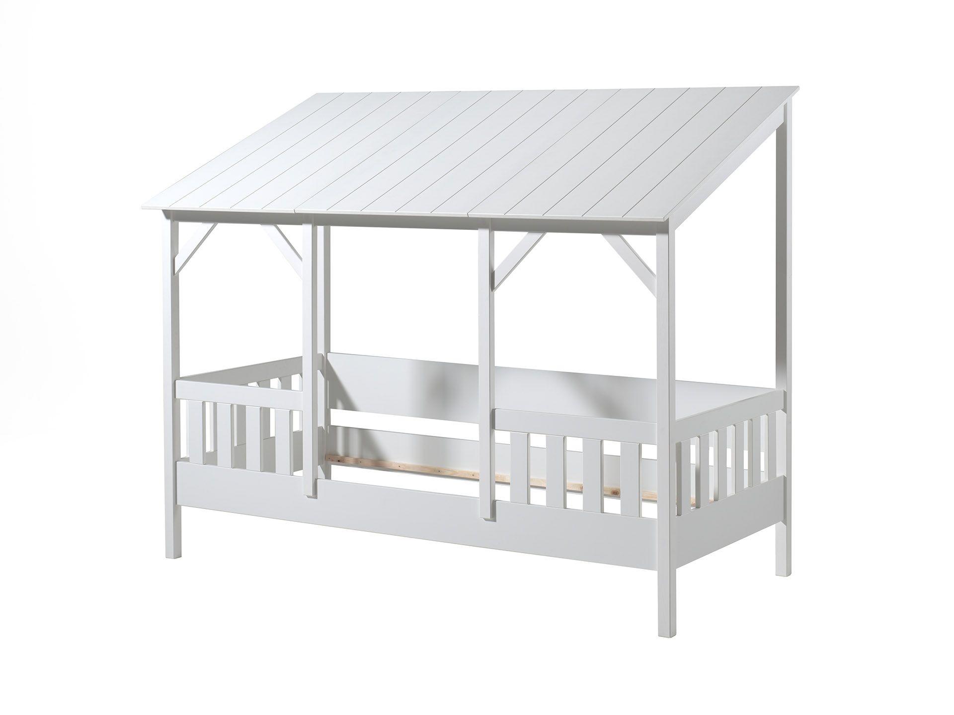 Το λευκό κρεβάτι σπιτιού (90 x 200 εκ.) με άσπρη οροφή από τη συλλογή HOUSEBED είναι κατασκευασμένο από συνδυασμό μασίφ πεύκου και MDF. Συνδυάζει άνεση, ασφάλεια και χρόνο παιχνιδιού σε ένα κομψό σχέδιο. Χάρη στο παιχνιδιάρικο πλαίσιο οροφής, η ώρα του ύπνου γίνεται μια περιπέτεια. Ιδανική για μικρούς ονειροπόλους που λατρεύουν να δημιουργούν το δικό τους ζεστό καταφύγιο. Οι υπερυψωμένες άκρες παρέχουν επιπλέον ασφάλεια και προστασία από πτώσεις.  Κάντε τα όνειρά σας πραγματικότητα με αυτό το γοητευτικό κρεβάτι σπιτιού.