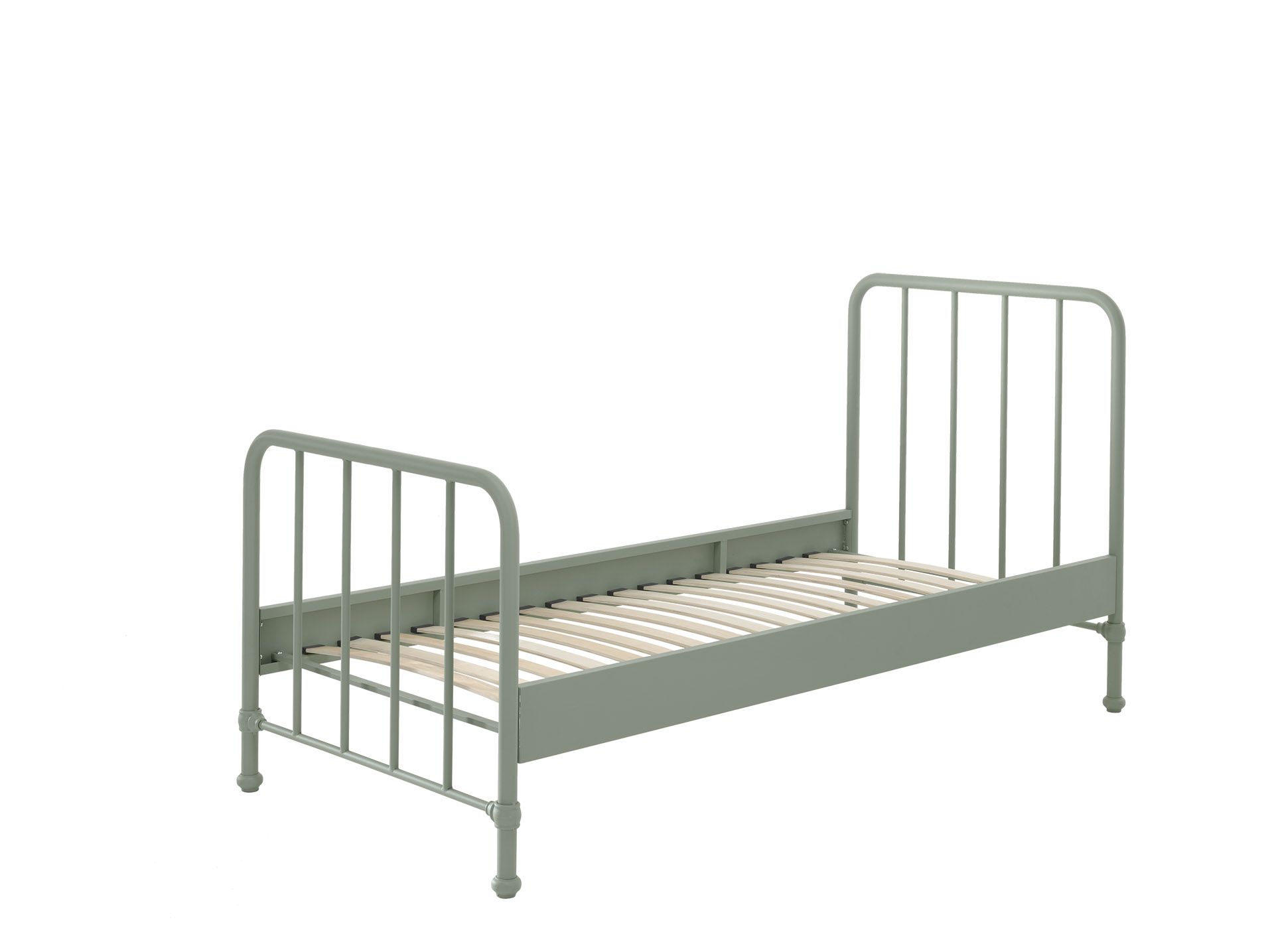 Το κρεβάτι BRONXX σε Olive Green χρώμα είναι κατασκευασμένο από μέταλλο. Το ματ Olive Green φινίρισμά του δίνει μια βιομηχανική εμφάνιση. Ο στιβαρός μεταλλικός σκελετός και τα πλαϊνά κάγκελα  εξασφαλίζουν ανθεκτικότητα και σταθερότητα.