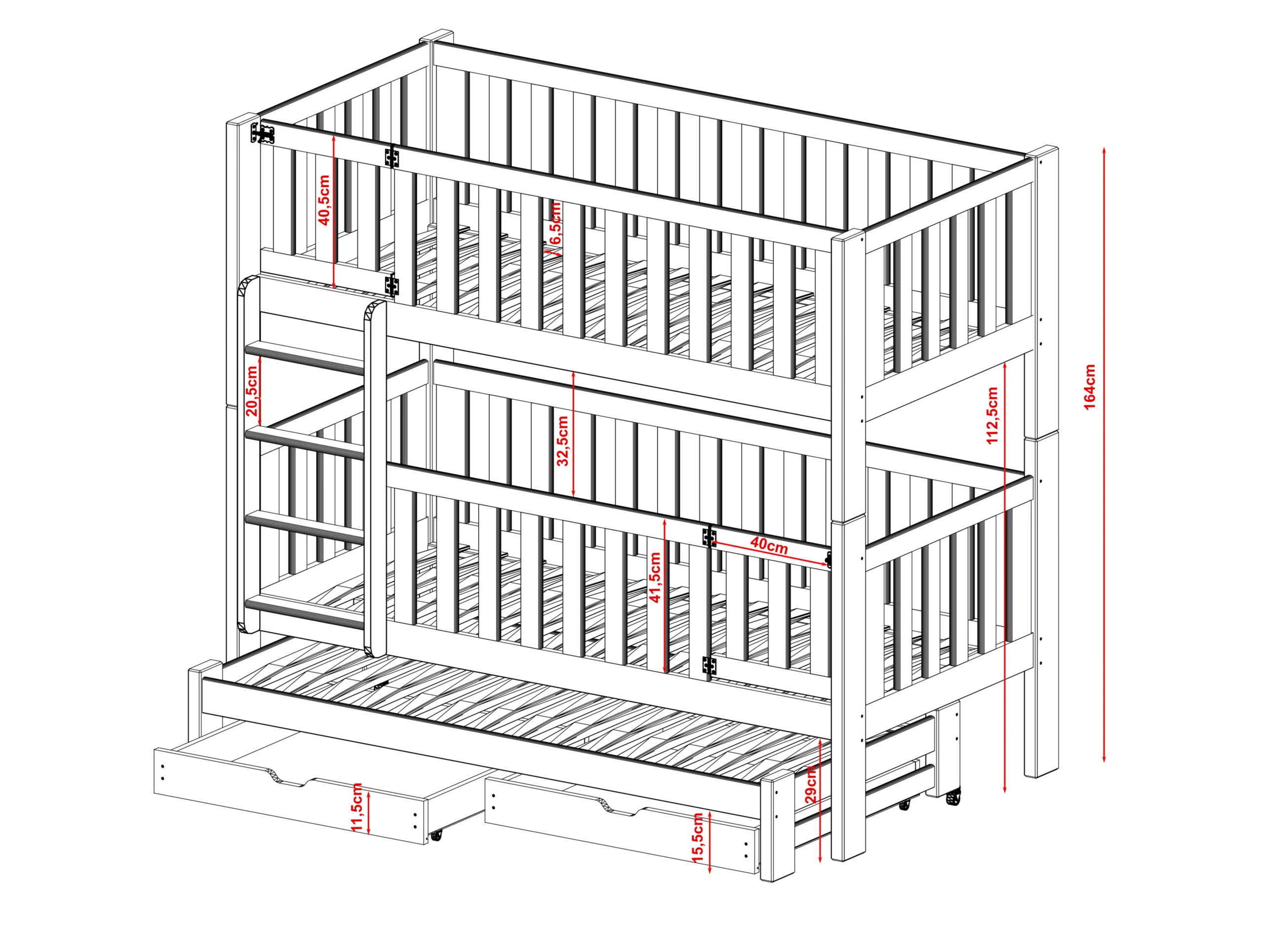 - Τύπος: Κουκέτα με τρίτο συρόμενο κρεβάτι