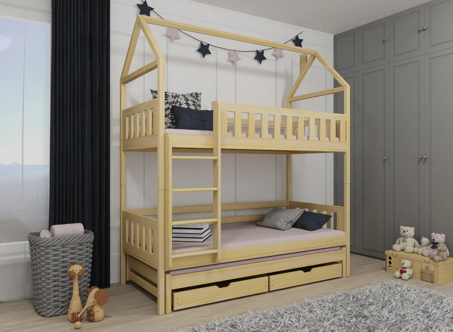 Αναζητάτε λύση για ένα λειτουργικό και όμορφο παιδικό δωμάτιο; Η ξύλινη κουκέτα IGA είναι η τέλεια επιλογή! Φτιαγμένο με προσοχή στη λεπτομέρεια και με υλικά υψηλής ποιότητας, το IGA εξασφαλίζει έναν ήρεμο και υγιεινό ύπνο. Ο κλασικός σχεδιασμός του ταιριάζει ιδανικά σε κάθε παιδικό δωμάτιο – αγοριών ή κοριτσιών. Η κουκέτα IGA είναι κατάλληλη για τρία παιδιά – περιλαμβάνει συρόμενο τρίτο κρεβάτι, καθιστώντας το εξαιρετική επιλογή για αδέλφια ή φιλοξενία φίλων. Η κατασκευή του από φυσικό πεύκο, οι ασφαλείς βαφές και η δυνατότητα αφαίρεσης των προστατευτικών κάγκελων το καθιστούν ασφαλές και πρακτικό για καθημερινή χρήση και παιχνίδι. ✅ 3 θέσεις ύπνου σε έναν μοντέρνο σχεδιασμό ✅ 100% φυσικό ξύλο πεύκου, φιλικό για αλλεργικούς και μαλακό στην αφή ✅ Προαιρετικά αφαιρούμενα προστατευτικά κάγκελα για ευελιξία χρήσης ✅ Συρόμενο τρίτο κρεβάτι – ιδανικό για αδέλφια ή επισκέπτες ✅ Ευρύχωρα συρτάρια για παιχνίδια ή λευκά είδη ✅ Δυνατότητα μετατροπής σε δύο μονά κρεβάτια ✅ Προαιρετική αύξηση κάθετου ύψους (προέκταση) για μεγαλύτερη άνεση και χώρο ✅ Πιστοποιήσεις FSC & REACH, απόλυτα ασφαλές και οικολογικό προϊόν ✅ Εύκολο στη συναρμολόγηση, με επιλογή υποστήριξης από την ομάδα μας