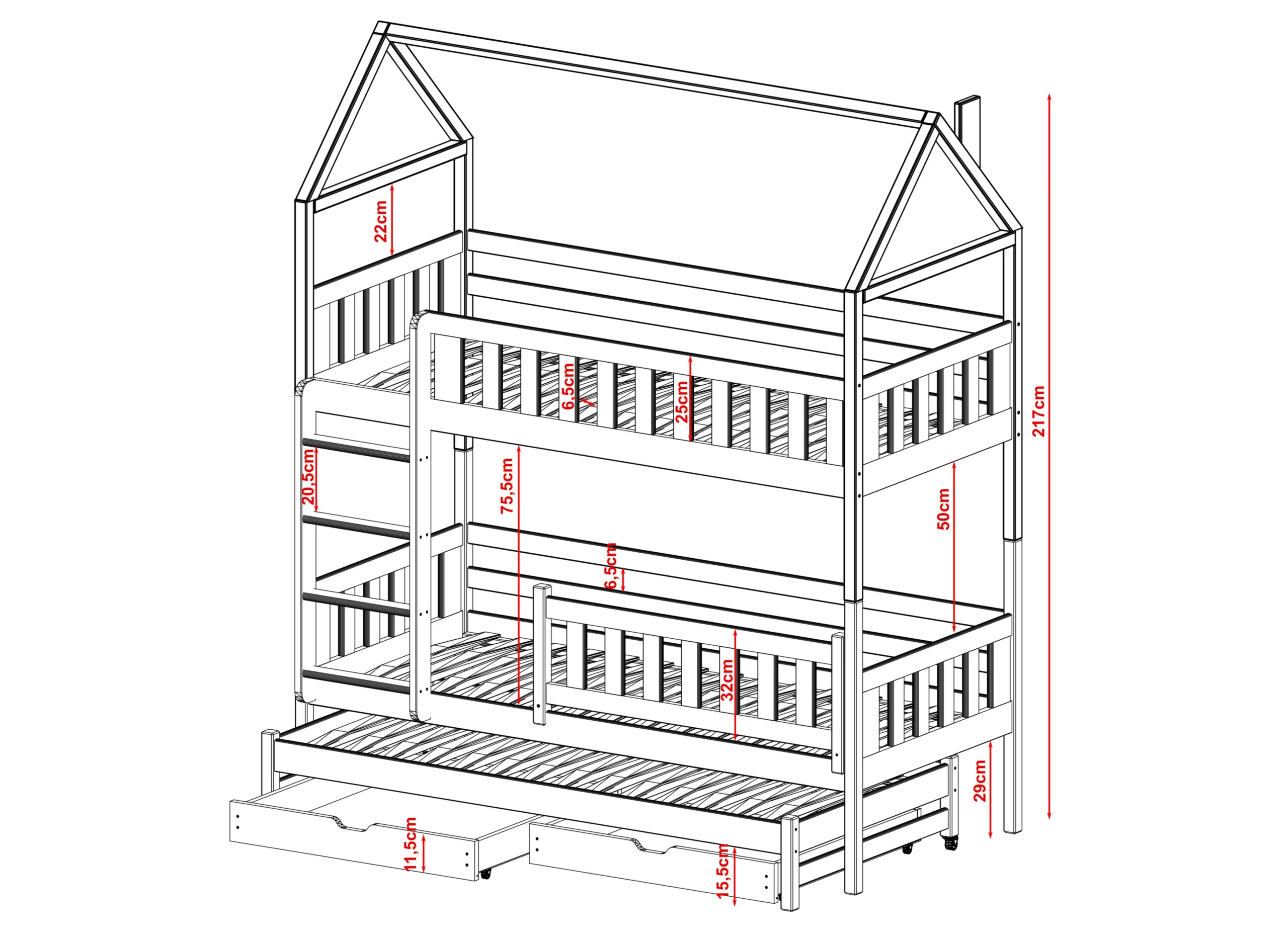 - Τύπος: Κουκέτα με τρίτο συρόμενο κρεβάτι