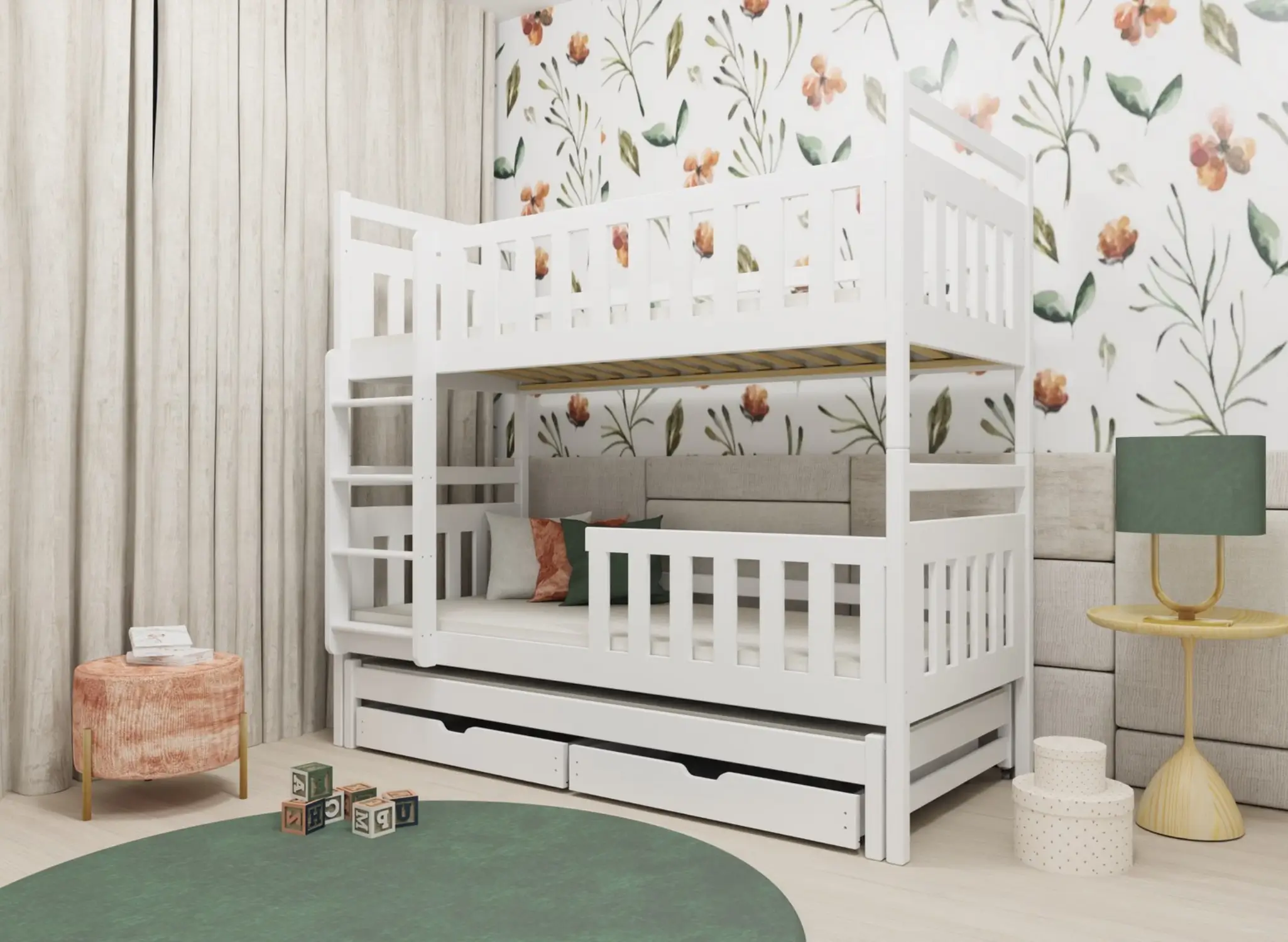 Αναζητάτε λύση για ένα λειτουργικό και όμορφο παιδικό δωμάτιο; Η ξύλινη κουκέτα KLARA είναι η τέλεια επιλογή! Φτιαγμένο με προσοχή στη λεπτομέρεια και με υλικά υψηλής ποιότητας, το KLARA εξασφαλίζει έναν ήρεμο και υγιεινό ύπνο. Ο κλασικός σχεδιασμός του ταιριάζει ιδανικά σε κάθε παιδικό δωμάτιο – αγοριών ή κοριτσιών. Η κουκέτα KLARA είναι κατάλληλη για τρία παιδιά – περιλαμβάνει συρόμενο τρίτο κρεβάτι, καθιστώντας το εξαιρετική επιλογή για αδέλφια ή φιλοξενία φίλων. Η κατασκευή του από φυσικό πεύκο, οι ασφαλείς βαφές και η δυνατότητα αφαίρεσης των προστατευτικών κάγκελων το καθιστούν ασφαλές και πρακτικό για καθημερινή χρήση και παιχνίδι. ✅ 3 θέσεις ύπνου σε έναν μοντέρνο σχεδιασμό ✅ 100% φυσικό ξύλο πεύκου, φιλικό για αλλεργικούς και μαλακό στην αφή ✅ Προαιρετικά αφαιρούμενα προστατευτικά κάγκελα για ευελιξία χρήσης ✅ Συρόμενο τρίτο κρεβάτι – ιδανικό για αδέλφια ή επισκέπτες ✅ Ευρύχωρα συρτάρια για παιχνίδια ή λευκά είδη ✅ Δυνατότητα μετατροπής σε δύο μονά κρεβάτια ✅ Προαιρετική αύξηση κάθετου ύψους (προέκταση) για μεγαλύτερη άνεση και χώρο ✅ Πιστοποιήσεις FSC & REACH, απόλυτα ασφαλές και οικολογικό προϊόν ✅ Εύκολο στη συναρμολόγηση, με επιλογή υποστήριξης από την ομάδα μας