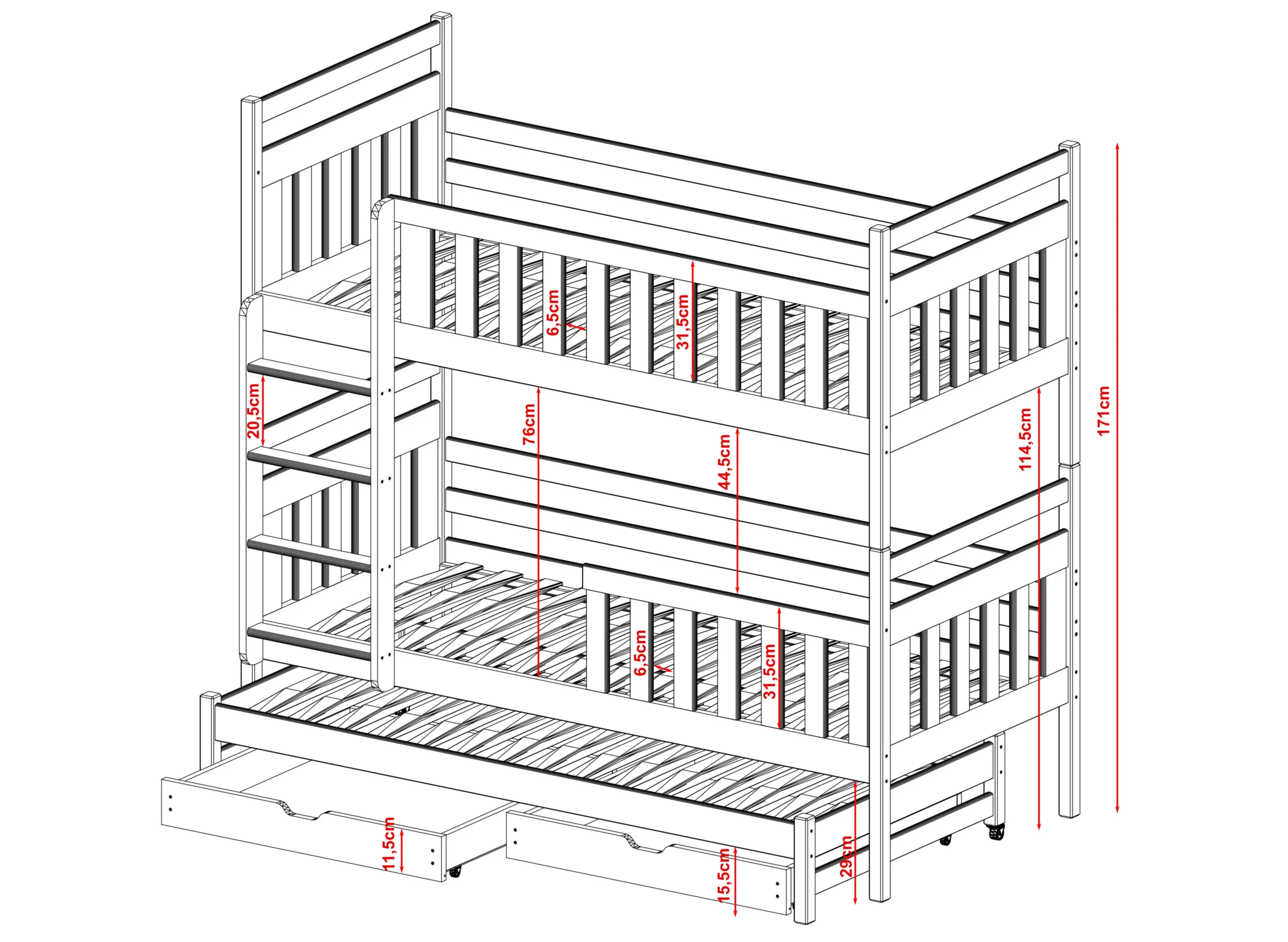 - Τύπος: Κουκέτα με τρίτο συρόμενο κρεβάτι
