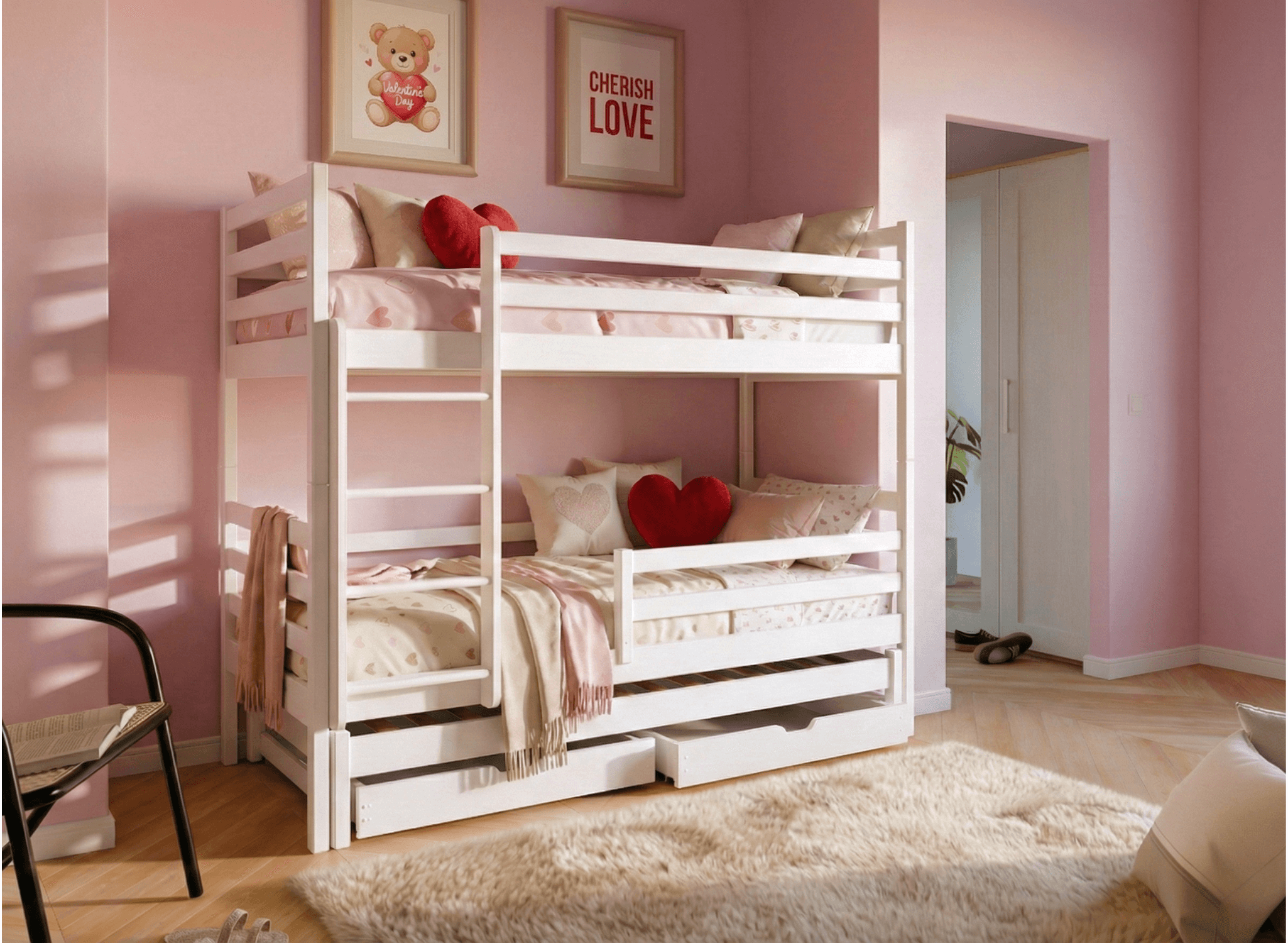 Αναζητάτε λύση για ένα λειτουργικό και όμορφο παιδικό δωμάτιο; Η ξύλινη κουκέτα LUK είναι η τέλεια επιλογή! Φτιαγμένο με προσοχή στη λεπτομέρεια και με υλικά υψηλής ποιότητας, το LUK εξασφαλίζει έναν ήρεμο και υγιεινό ύπνο. Ο κλασικός σχεδιασμός του ταιριάζει ιδανικά σε κάθε παιδικό δωμάτιο – αγοριών ή κοριτσιών. Η κουκέτα LUK είναι κατάλληλη για τρία παιδιά – περιλαμβάνει συρόμενο τρίτο κρεβάτι, καθιστώντας το εξαιρετική επιλογή για αδέλφια ή φιλοξενία φίλων. Η κατασκευή του από φυσικό πεύκο, οι ασφαλείς βαφές και η δυνατότητα αφαίρεσης των προστατευτικών κάγκελων το καθιστούν ασφαλές και πρακτικό για καθημερινή χρήση και παιχνίδι. ✅ 3 θέσεις ύπνου σε έναν μοντέρνο σχεδιασμό ✅ 100% φυσικό ξύλο πεύκου, φιλικό για αλλεργικούς και μαλακό στην αφή ✅ Προαιρετικά αφαιρούμενα προστατευτικά κάγκελα για ευελιξία χρήσης ✅ Συρόμενο τρίτο κρεβάτι – ιδανικό για αδέλφια ή επισκέπτες ✅ Ευρύχωρα συρτάρια για παιχνίδια ή λευκά είδη ✅ Δυνατότητα μετατροπής σε δύο μονά κρεβάτια ✅ Πιστοποιήσεις FSC & REACH, απόλυτα ασφαλές και οικολογικό προϊόν ✅ Εύκολο στη συναρμολόγηση, με επιλογή υποστήριξης από την ομάδα μας