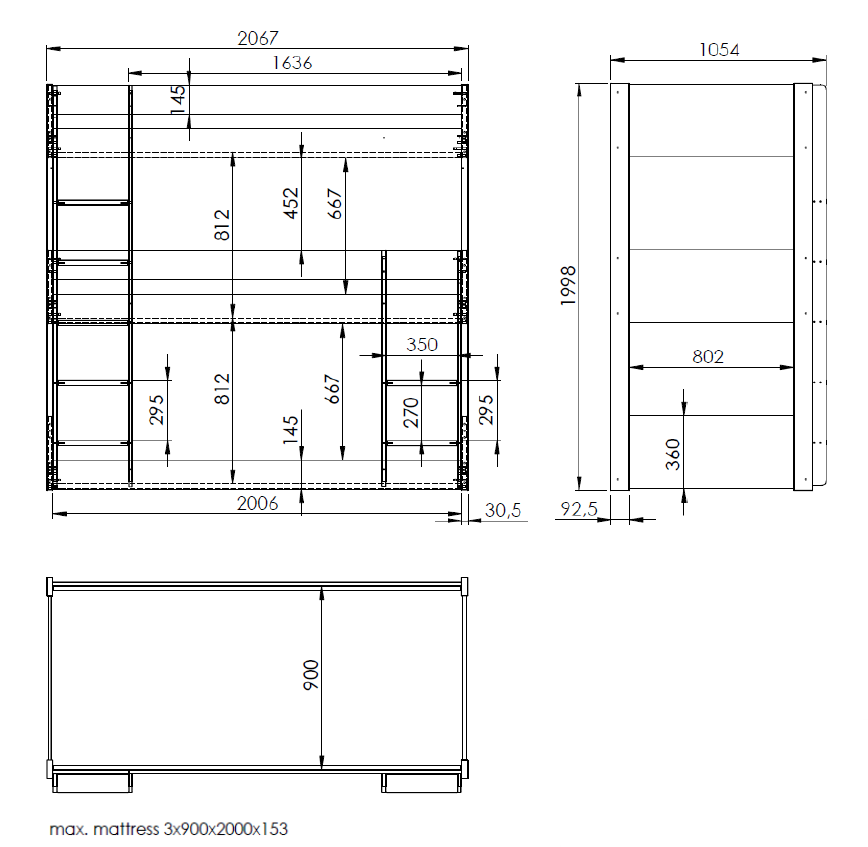 Η τριπλή κουκέτα SCOTT (90 x 200 εκ.) έχει χωρητικότητα τριών ατόμων, με προσοχή στη λεπτομέρεια και τη λειτουργικότητα. Είναι μια έξυπνη και κομψή λύση από λευκό λακαρισμένο σκανδιναβικό πεύκο για όποιον αναζητά επιλογές ύπνου που εξοικονομούν χώρο. Προσφέρει μέγιστη χωρητικότητα ύπνου σε ελάχιστο χώρο.