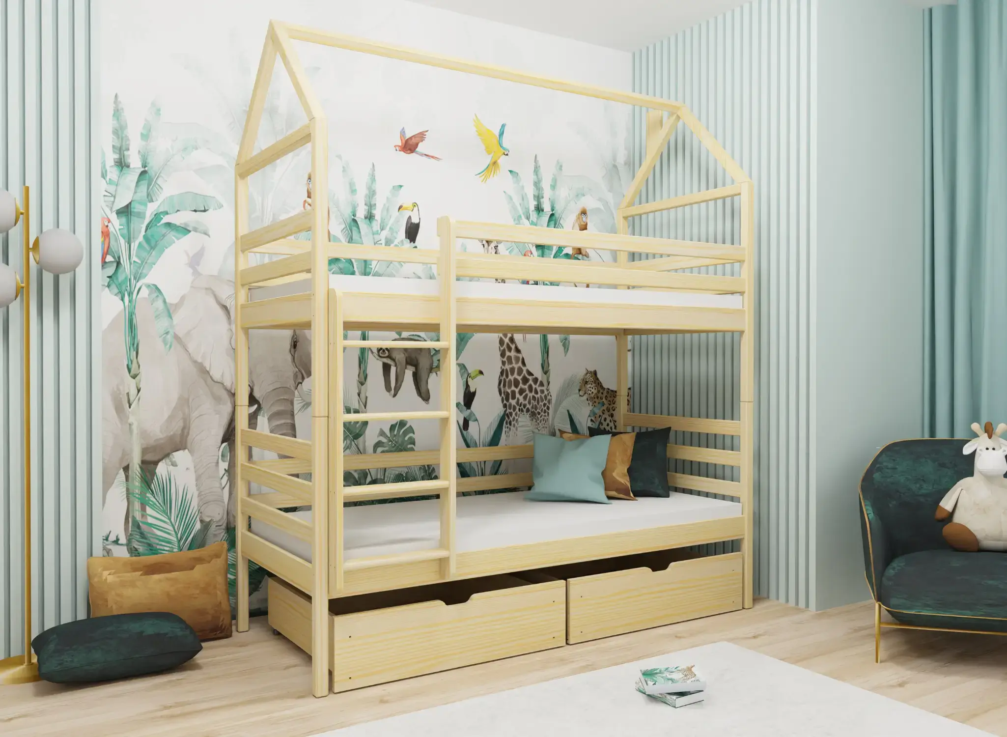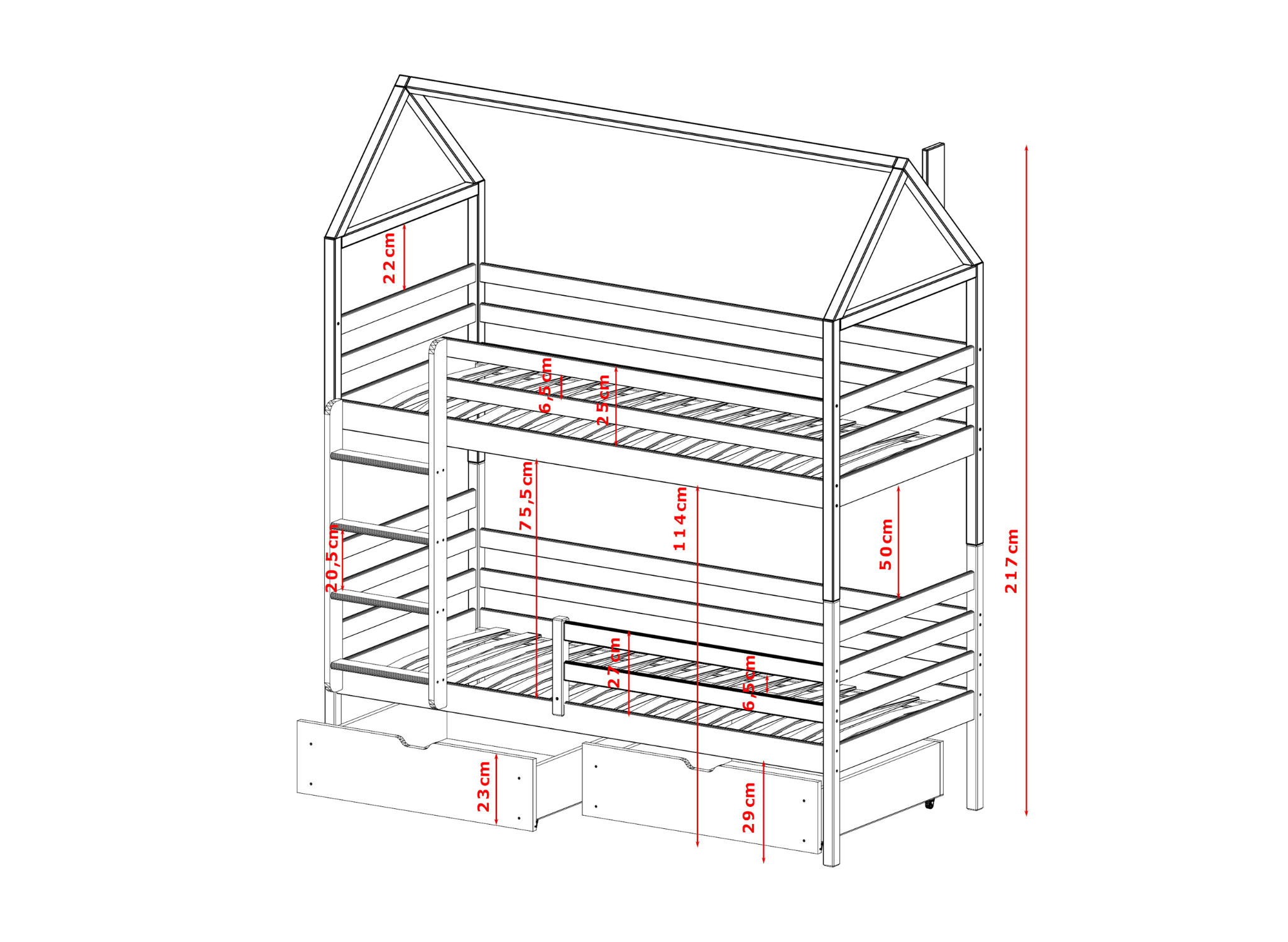 H παιδική κουκέτα ALEXείναι η ιδανική επιλογή για κάθε παιδικό δωμάτιο. Με τον παιχνιδιάρικο και ταυτόχρονα λειτουργικό σχεδιασμό του, αποτελεί μια ασφαλή και όμορφη λύση για δύο παιδιά. Κατασκευασμένο εξ ολοκλήρου από μασίφ ξύλο πεύκου, διαθέτει προστατευτικά κάγκελα, κάθετη σκάλα, και ευρύχωρα συρτάρια για αποθήκευση. Η κουκέτα ADAŚ δεν εξοικονομεί μόνο χώρο, αλλά προσφέρει και έναν ήσυχο, υγιεινό ύπνο χάρη στα οικολογικά υλικά του. ✅ 100% φυσικό ξύλο πεύκου – Ανθεκτικό, φιλικό για αλλεργικούς και μαλακό στην αφή. ✅ Ασφαλές για παιδιά – Με πιστοποιημένα προστατευτικά κάγκελα και ασφαλή σκάλα. ✅ Οικολογική επιλογή – Βαμμένο με χρώματα νερού, χωρίς τοξικές ουσίες. ✅ Με δυνατότητα αποθήκευσης – Διαθέτει 2 ευρύχωρα συρτάρια για παιχνίδια ή λευκά είδη. ✅ Εργονομία & άνεση – Μελετημένος σχεδιασμός που αφήνει επαρκή κάθετο χώρο (προαιρετικά) για άνεση στο κάτω κρεβάτι. ✅ Ευελιξία στη διαμόρφωση – Δυνατότητα επιλογής αριστερής ή δεξιάς διάταξης της σκάλας, καθώς και αποσυναρμολόγησης σε δύο ξεχωριστά μονά κρεβάτια. ✅ Σύμφωνο με ευρωπαϊκές προδιαγραφές ασφάλειας (EN 747-1) και περιβαλλοντικά πρότυπα (FSC, REACH).