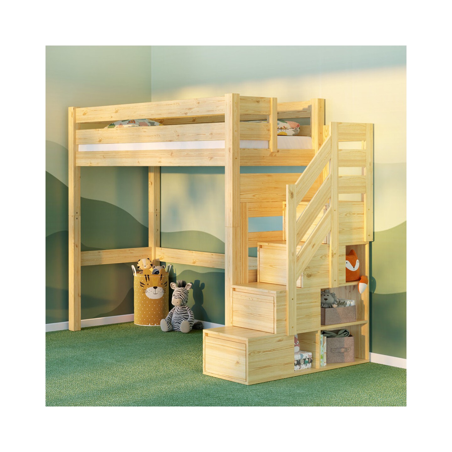 Everest κουκέτα Ημιώροφου μασίφ με σκαλοπάτια φυσικό ξύλο