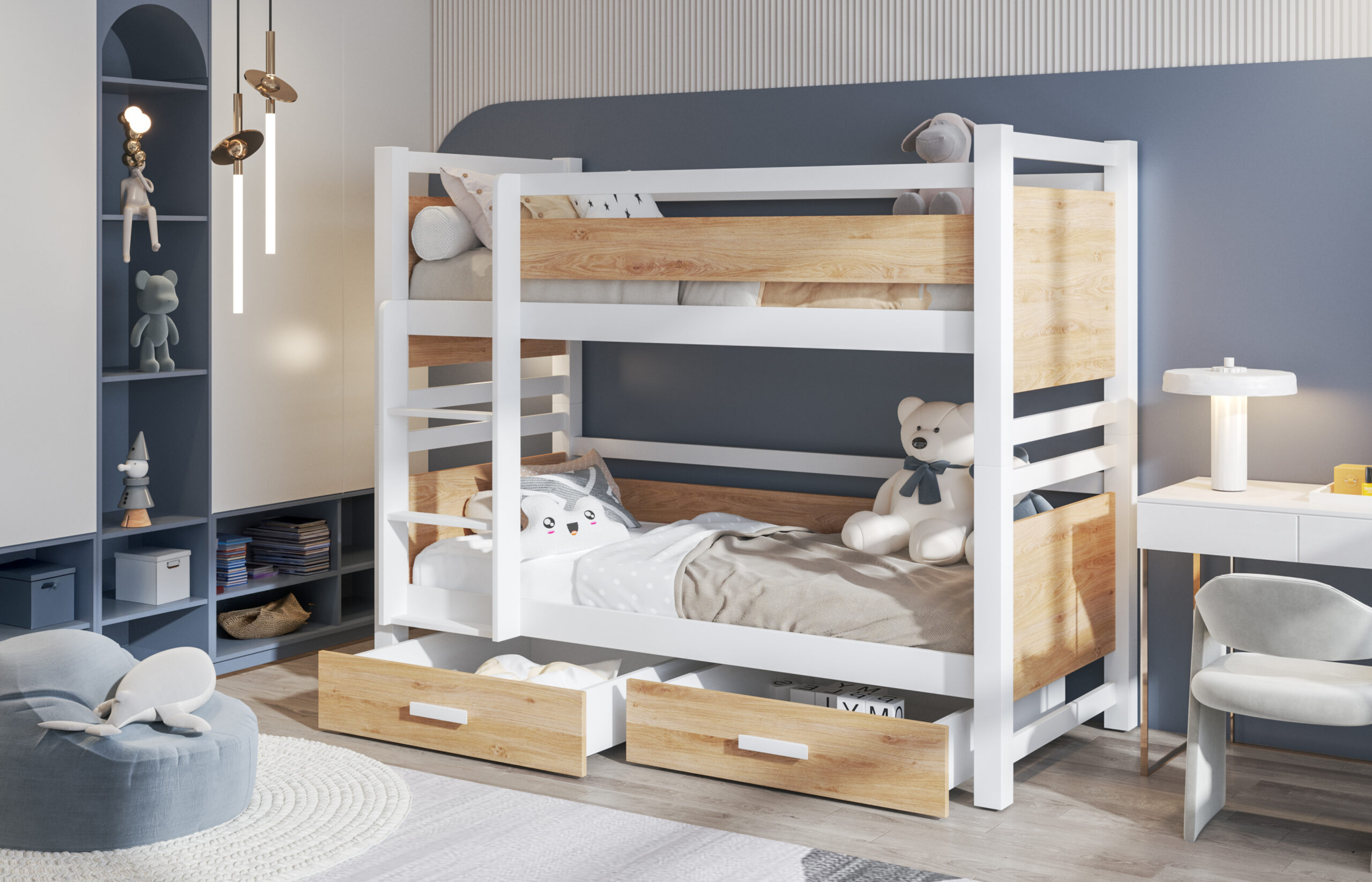Οργάνωση, στυλ και άνεση… σε δύο επίπεδα! Η κουκέτα Janis είναι η ιδανική επιλογή για κάθε παιδικό δωμάτιο, προσφέροντας ασφάλεια, λειτουργικότητα και μοντέρνο στυλ. Ο κομψός συνδυασμός του λευκού με την απόχρωση δρυς artisan ταιριάζει τέλεια σε κάθε αισθητική χώρου. Κατασκευάζεται από μασίφ ξύλο και μοριοσανίδα, εξασφαλίζοντας στιβαρότητα και μακροχρόνια αντοχή. Χαρακτηριστικά προϊόντος: ✅ Κατάλληλη για δύο παιδιά – ιδανική λύση για αδέρφια ή φιλοξενούμενους Το κρεβάτι παραδίδεται αμοντάριστο σε κουτιά με αναλυτικές οδηγίες συναρμολόγησης. Με την κουκέτα Janis, δημιουργείτε έναν όμορφο, ασφαλή και πρακτικό χώρο που μεγαλώνει μαζί με το παιδί σας!