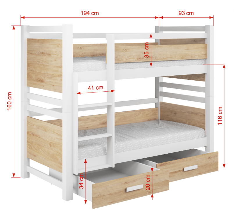 ✅ Ύψος στο οποίο ξεκινάει το πάνω κρεβάτι: 116 εκ.