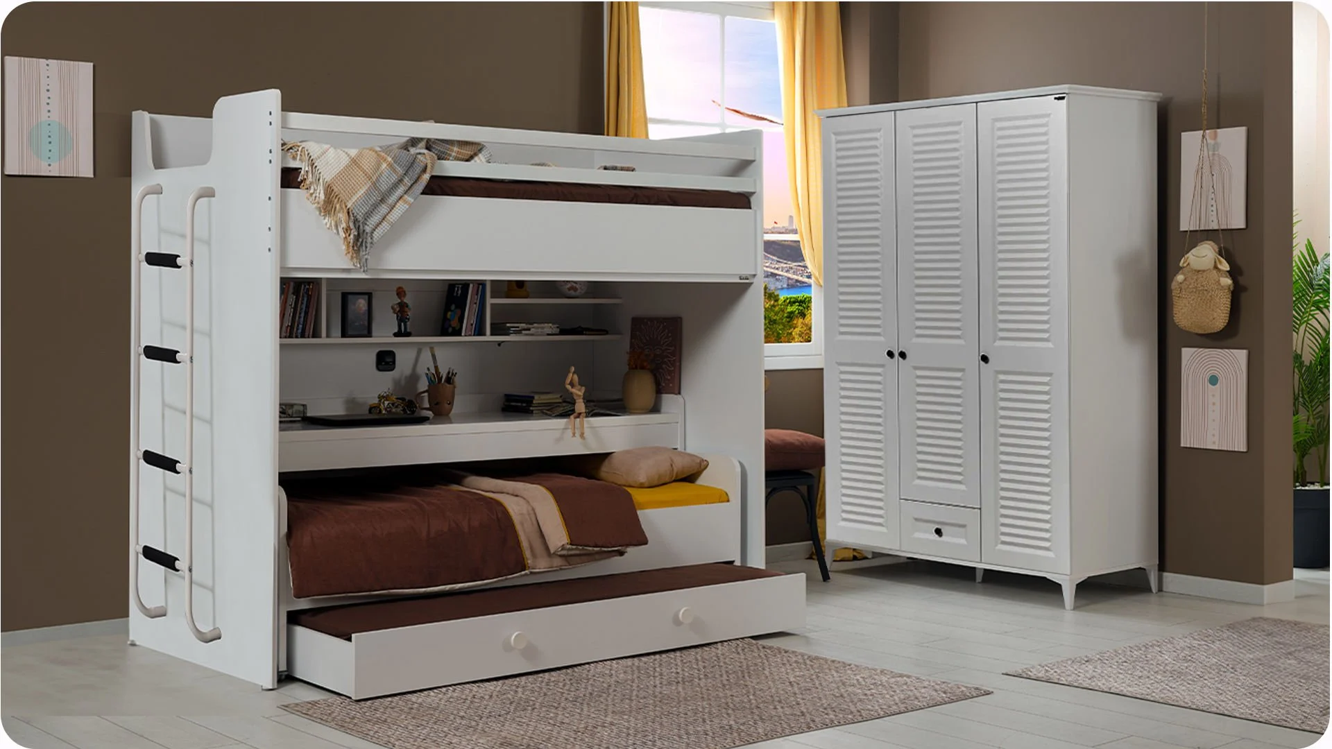 - Δυνατότητα εύκολης μετακίνησης του γραφείου και του κρεβατιού χάρη στους ενσωματωμένους τροχούς.