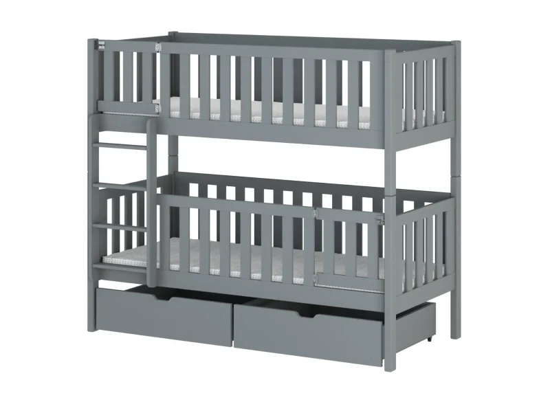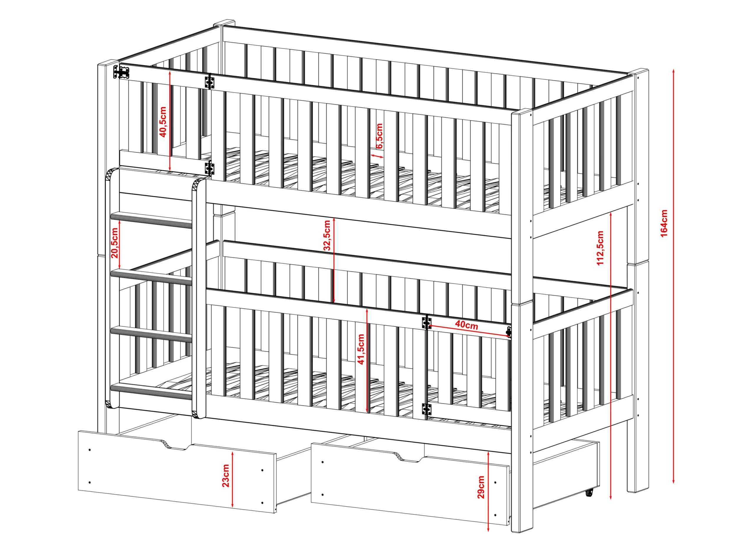 H παιδική κουκέτα KSAWERY είναι η ιδανική επιλογή για κάθε παιδικό δωμάτιο. Με τον παιχνιδιάρικο και ταυτόχρονα λειτουργικό σχεδιασμό του, αποτελεί μια ασφαλή και όμορφη λύση για δύο παιδιά. Κατασκευασμένο εξ ολοκλήρου από μασίφ ξύλο πεύκου, διαθέτει προστατευτικά κάγκελα, κάθετη σκάλα, και ευρύχωρα συρτάρια για αποθήκευση. Η κουκέτα KSAWERY δεν εξοικονομεί μόνο χώρο, αλλά προσφέρει και έναν ήσυχο, υγιεινό ύπνο χάρη στα οικολογικά υλικά του.