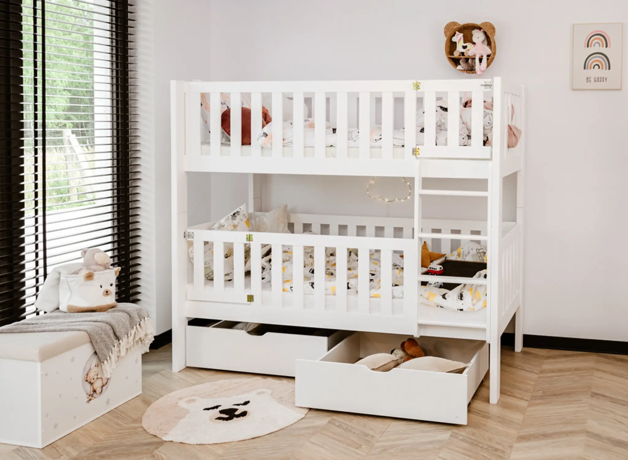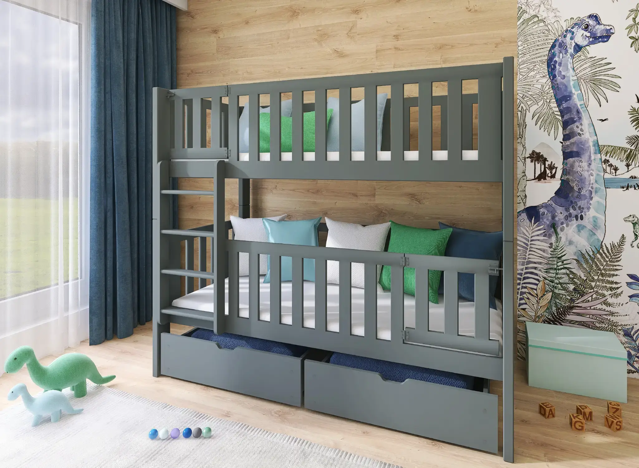 H παιδική κουκέτα KSAWERY είναι η ιδανική επιλογή για κάθε παιδικό δωμάτιο. Με τον παιχνιδιάρικο και ταυτόχρονα λειτουργικό σχεδιασμό του, αποτελεί μια ασφαλή και όμορφη λύση για δύο παιδιά. Κατασκευασμένο εξ ολοκλήρου από μασίφ ξύλο πεύκου, διαθέτει προστατευτικά κάγκελα, κάθετη σκάλα, και ευρύχωρα συρτάρια για αποθήκευση. Η κουκέτα KSAWERY δεν εξοικονομεί μόνο χώρο, αλλά προσφέρει και έναν ήσυχο, υγιεινό ύπνο χάρη στα οικολογικά υλικά του. ✅ 100% φυσικό ξύλο πεύκου – Ανθεκτικό, φιλικό για αλλεργικούς και μαλακό στην αφή. ✅ Ασφαλές για παιδιά – Με πιστοποιημένα προστατευτικά κάγκελα και ασφαλή σκάλα. ✅ Οικολογική επιλογή – Βαμμένο με χρώματα νερού, χωρίς τοξικές ουσίες. ✅ Με δυνατότητα αποθήκευσης – Διαθέτει 2 ευρύχωρα συρτάρια για παιχνίδια ή λευκά είδη. ✅ Εργονομία & άνεση – Μελετημένος σχεδιασμός που αφήνει επαρκή κάθετο χώρο (προαιρετικά) για άνεση στο κάτω κρεβάτι. ✅ Ευελιξία στη διαμόρφωση – Δυνατότητα επιλογής αριστερής ή δεξιάς διάταξης της σκάλας, καθώς και αποσυναρμολόγησης σε δύο ξεχωριστά μονά κρεβάτια. ✅ Σύμφωνο με ευρωπαϊκές προδιαγραφές ασφάλειας (EN 747-1) και περιβαλλοντικά πρότυπα (FSC, REACH).