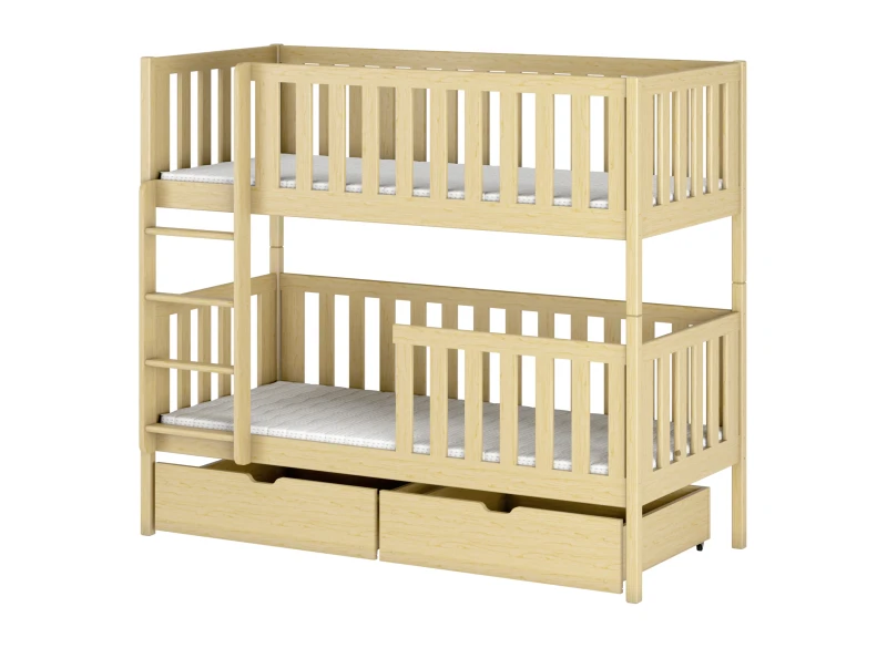 H παιδική κουκέτα MICHALINA είναι η ιδανική επιλογή για κάθε παιδικό δωμάτιο. Με τον παιχνιδιάρικο και ταυτόχρονα λειτουργικό σχεδιασμό του, αποτελεί μια ασφαλή και όμορφη λύση για δύο παιδιά. Κατασκευασμένο εξ ολοκλήρου από μασίφ ξύλο πεύκου, διαθέτει προστατευτικά κάγκελα, κάθετη σκάλα, και ευρύχωρα συρτάρια για αποθήκευση. Η κουκέτα MICHALINA δεν εξοικονομεί μόνο χώρο, αλλά προσφέρει και έναν ήσυχο, υγιεινό ύπνο χάρη στα οικολογικά υλικά του. ✅ 100% φυσικό ξύλο πεύκου – Ανθεκτικό, φιλικό για αλλεργικούς και μαλακό στην αφή. ✅ Ασφαλές για παιδιά – Με πιστοποιημένα προστατευτικά κάγκελα και ασφαλή σκάλα. ✅ Οικολογική επιλογή – Βαμμένο με χρώματα νερού, χωρίς τοξικές ουσίες. ✅ Με δυνατότητα αποθήκευσης – Διαθέτει 2 ευρύχωρα συρτάρια για παιχνίδια ή λευκά είδη. ✅ Εργονομία & άνεση – Μελετημένος σχεδιασμός που αφήνει επαρκή κάθετο χώρο (προαιρετικά) για άνεση στο κάτω κρεβάτι. ✅ Ευελιξία στη διαμόρφωση – Δυνατότητα επιλογής αριστερής ή δεξιάς διάταξης της σκάλας, καθώς και αποσυναρμολόγησης σε δύο ξεχωριστά μονά κρεβάτια. ✅ Σύμφωνο με ευρωπαϊκές προδιαγραφές ασφάλειας (EN 747-1) και περιβαλλοντικά πρότυπα (FSC, REACH).