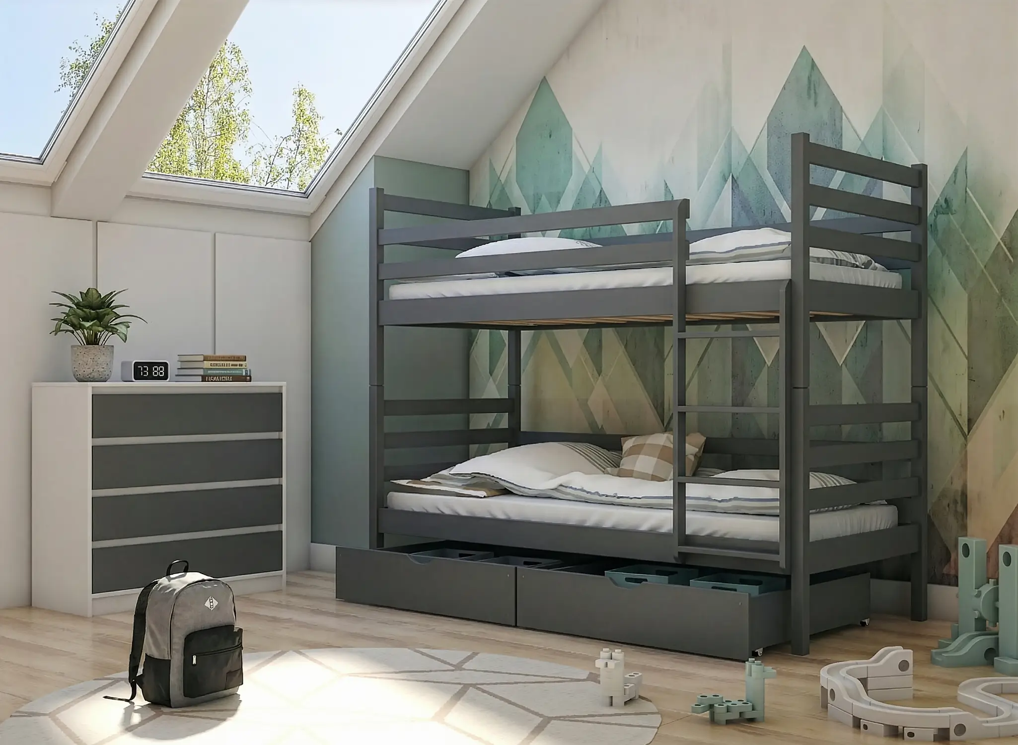 H παιδική κουκέτα NEMO είναι η ιδανική επιλογή για κάθε παιδικό δωμάτιο. Με τον παιχνιδιάρικο και ταυτόχρονα λειτουργικό σχεδιασμό του, αποτελεί μια ασφαλή και όμορφη λύση για δύο παιδιά. Κατασκευασμένο εξ ολοκλήρου από μασίφ ξύλο πεύκου, διαθέτει προστατευτικά κάγκελα, κάθετη σκάλα, και ευρύχωρα συρτάρια για αποθήκευση. Η κουκέτα NEMO δεν εξοικονομεί μόνο χώρο, αλλά προσφέρει και έναν ήσυχο, υγιεινό ύπνο χάρη στα οικολογικά υλικά του. ✅ 100% φυσικό ξύλο πεύκου – Ανθεκτικό, φιλικό για αλλεργικούς και μαλακό στην αφή. ✅ Ασφαλές για παιδιά – Με πιστοποιημένα προστατευτικά κάγκελα και ασφαλή σκάλα. ✅ Οικολογική επιλογή – Βαμμένο με χρώματα νερού, χωρίς τοξικές ουσίες. ✅ Με δυνατότητα αποθήκευσης – Διαθέτει 2 ευρύχωρα συρτάρια για παιχνίδια ή λευκά είδη. ✅ Εργονομία & άνεση – Μελετημένος σχεδιασμός που αφήνει επαρκή κάθετο χώρο (προαιρετικά) για άνεση στο κάτω κρεβάτι. ✅ Ευελιξία στη διαμόρφωση – Δυνατότητα επιλογής αριστερής ή δεξιάς διάταξης της σκάλας, καθώς και αποσυναρμολόγησης σε δύο ξεχωριστά μονά κρεβάτια. ✅ Σύμφωνο με ευρωπαϊκές προδιαγραφές ασφάλειας (EN 747-1) και περιβαλλοντικά πρότυπα (FSC, REACH).