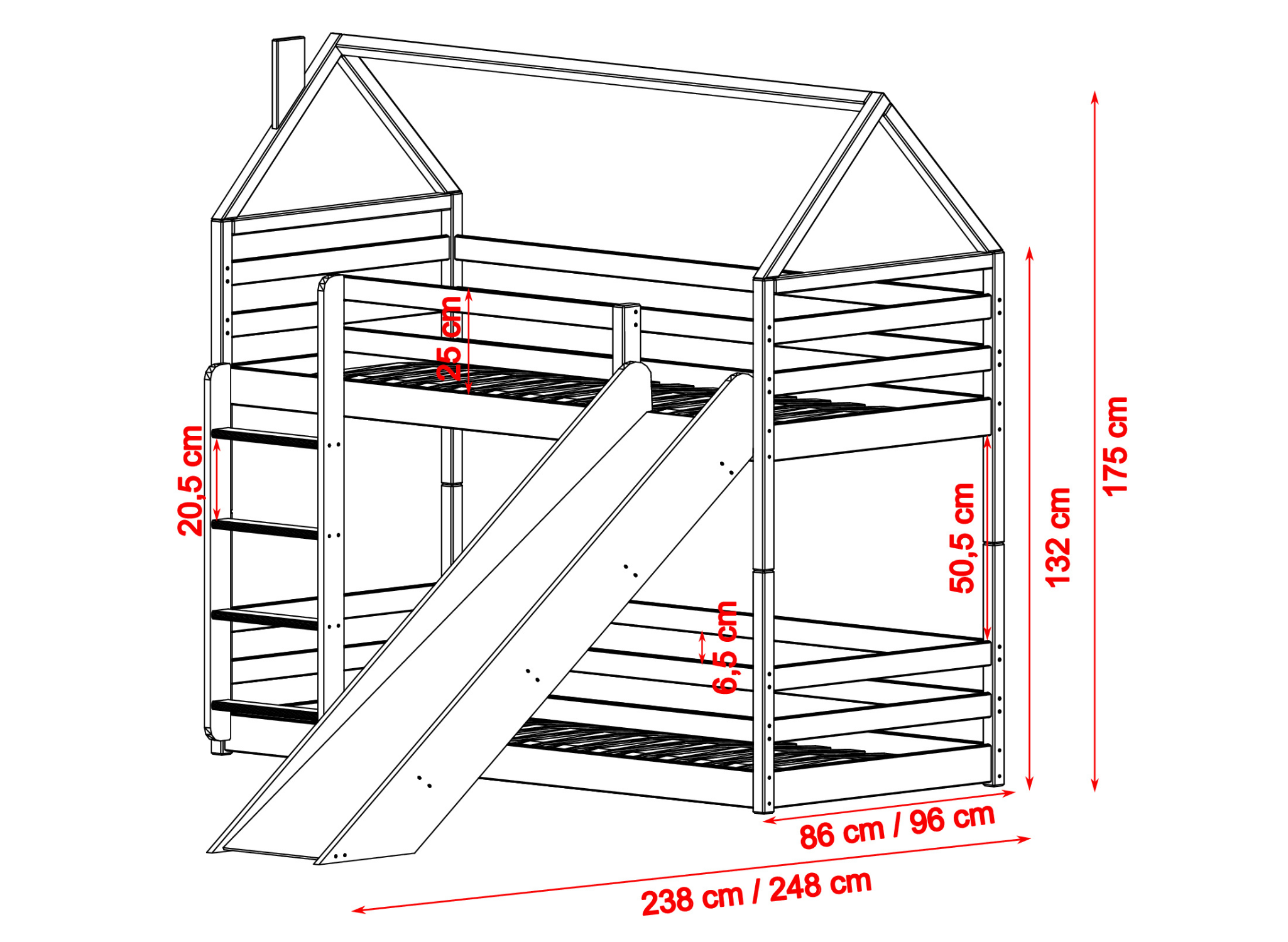 H παιδική κουκέτα PLAY είναι η ιδανική επιλογή για κάθε παιδικό δωμάτιο. Με τον παιχνιδιάρικο και ταυτόχρονα λειτουργικό σχεδιασμό του, αποτελεί μια ασφαλή και όμορφη λύση για δύο παιδιά. Κατασκευασμένο εξ ολοκλήρου από μασίφ ξύλο πεύκου, διαθέτει προστατευτικά κάγκελα, κάθετη σκάλα, τσουλήθρα και ευρύχωρα συρτάρια για αποθήκευση. Η κουκέτα PLAY δεν εξοικονομεί μόνο χώρο, αλλά προσφέρει και έναν ήσυχο, υγιεινό ύπνο χάρη στα οικολογικά υλικά του. ✅ 100% φυσικό ξύλο πεύκου – Ανθεκτικό, φιλικό για αλλεργικούς και μαλακό στην αφή. ✅ Ασφαλές για παιδιά – Με πιστοποιημένα προστατευτικά κάγκελα και ασφαλή σκάλα. ✅ Οικολογική επιλογή – Βαμμένο με χρώματα νερού, χωρίς τοξικές ουσίες. ✅ Με δυνατότητα αποθήκευσης – Διαθέτει 2 ευρύχωρα συρτάρια για παιχνίδια ή λευκά είδη. ✅ Εργονομία & άνεση – Μελετημένος σχεδιασμός που αφήνει επαρκή κάθετο χώρο (προαιρετικά) για άνεση στο κάτω κρεβάτι. ✅ Ευελιξία στη διαμόρφωση – Δυνατότητα επιλογής αριστερής ή δεξιάς διάταξης της σκάλας, καθώς και αποσυναρμολόγησης σε δύο ξεχωριστά μονά κρεβάτια. ✅ Σύμφωνο με ευρωπαϊκές προδιαγραφές ασφάλειας (EN 747-1) και περιβαλλοντικά πρότυπα (FSC, REACH).