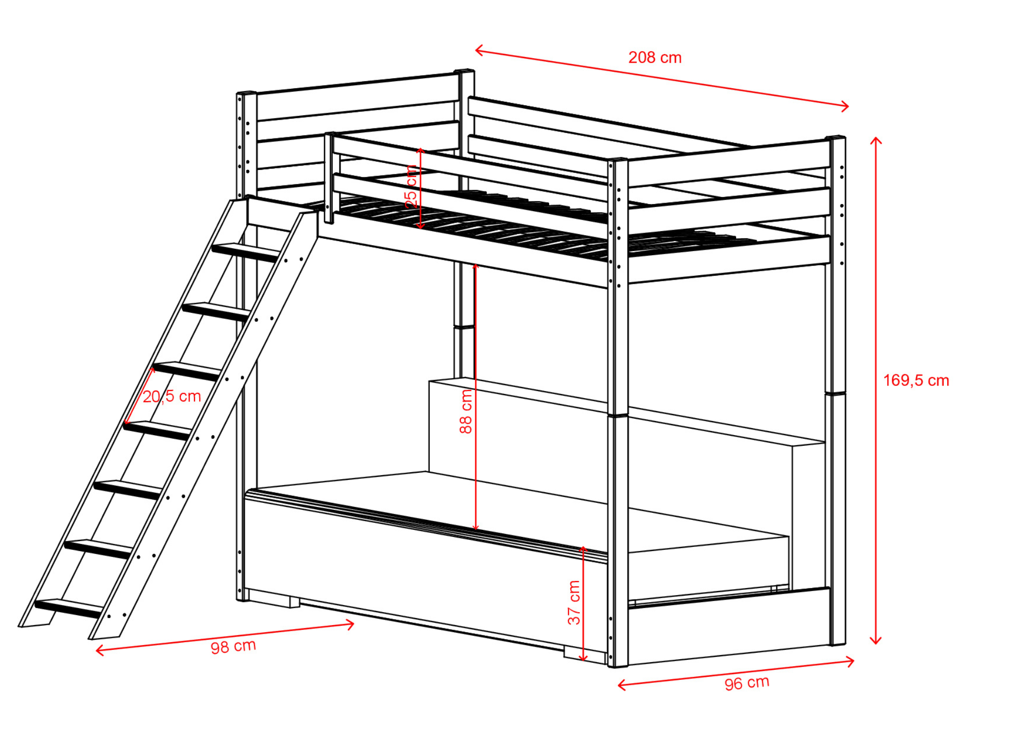 H παιδική κουκέτα SOFINO είναι η ιδανική επιλογή για κάθε παιδικό δωμάτιο. Με τον παιχνιδιάρικο και ταυτόχρονα λειτουργικό σχεδιασμό του, αποτελεί μια ασφαλή και όμορφη λύση για δύο παιδιά. Κατασκευασμένο εξ ολοκλήρου από μασίφ ξύλο πεύκου, διαθέτει προστατευτικά κάγκελα, κάθετη σκάλα, και καναπέ κρεβάτι. Η κουκέτα SOFINO δεν εξοικονομεί μόνο χώρο, αλλά προσφέρει και έναν ήσυχο, υγιεινό ύπνο χάρη στα οικολογικά υλικά του. ✅ 100% φυσικό ξύλο πεύκου – Ανθεκτικό, φιλικό για αλλεργικούς και μαλακό στην αφή. ✅ Ασφαλές για παιδιά – Με πιστοποιημένα προστατευτικά κάγκελα και ασφαλή σκάλα. ✅ Οικολογική επιλογή – Βαμμένο με χρώματα νερού, χωρίς τοξικές ουσίες. ✅ Με δυνατότητα αποθήκευσης – Διαθέτει 2 ευρύχωρα συρτάρια για παιχνίδια ή λευκά είδη. ✅ Εργονομία & άνεση – Μελετημένος σχεδιασμός που αφήνει επαρκή κάθετο χώρο (προαιρετικά) για άνεση στο κάτω κρεβάτι. ✅ Ευελιξία στη διαμόρφωση – Δυνατότητα επιλογής αριστερής ή δεξιάς διάταξης της σκάλας, καθώς και αποσυναρμολόγησης σε δύο ξεχωριστά μονά κρεβάτια. ✅ Σύμφωνο με ευρωπαϊκές προδιαγραφές ασφάλειας (EN 747-1) και περιβαλλοντικά πρότυπα (FSC, REACH).
