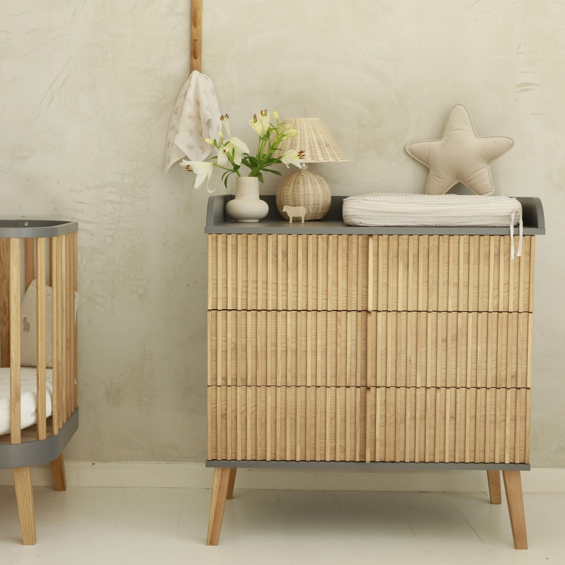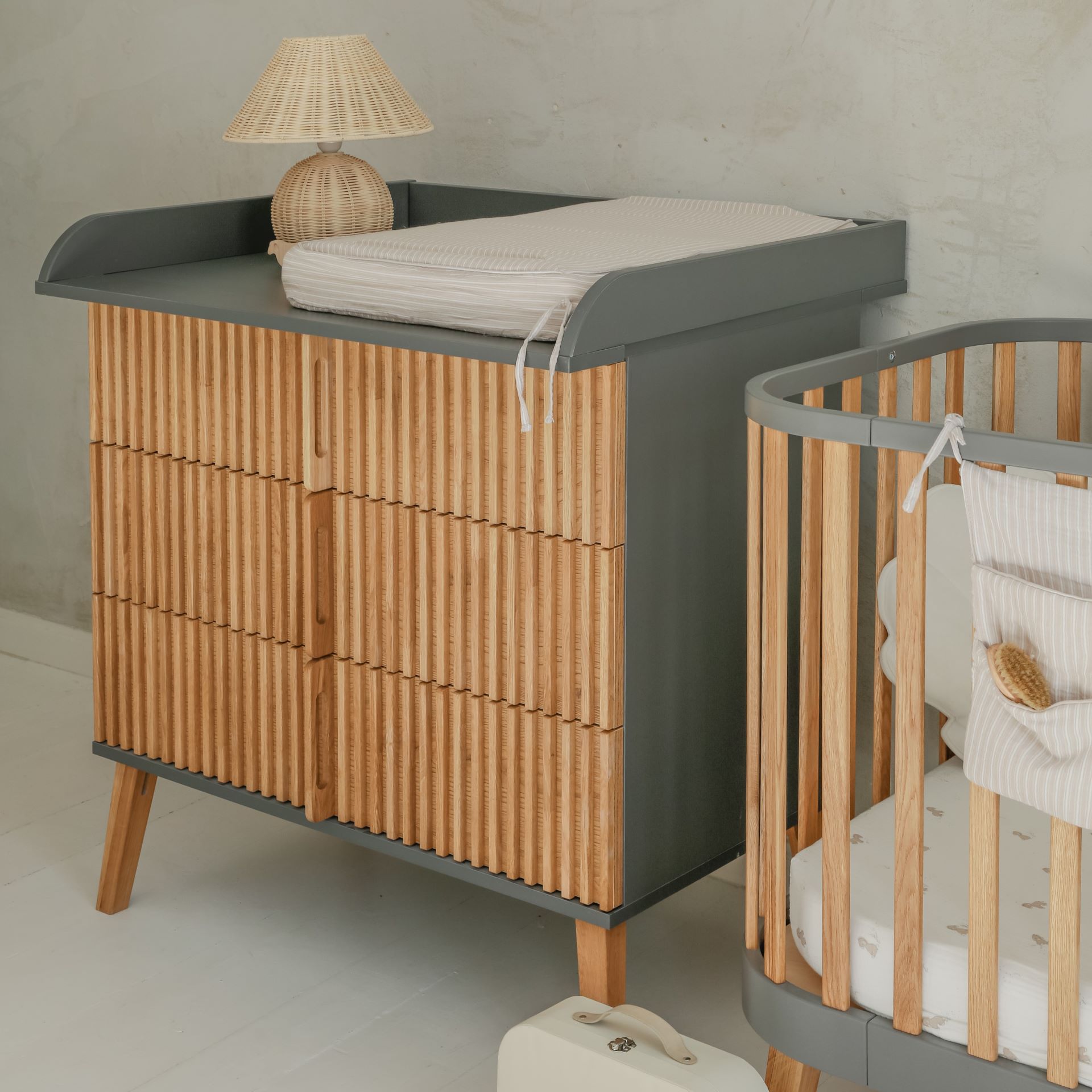 Η συρταριέρα Bambi Mundo είναι ένα έπιπλο μοντέρνου στιλ με ψηλά πόδια που προσθέτει εξαιρετική κομψότητα σε κάθε δωμάτιο με το μοναδικό του φινίρισμα. Τα τρία ευρύχωρα συρτάρια με τα βολικά χερούλια παρέχουν τον απαραίτητο αποθηκευτικό χώρο. Με την επιλογή ενός πρόσθετου στοιχείου, η συρταριέρα μπορεί να χρησιμεύσει και ως αλλαξιέρα για το μωρό σας, κάνοντας τον συνδυασμό πρακτικότητας και κομψού σχεδιασμού πιο εύκολο από ποτέ.