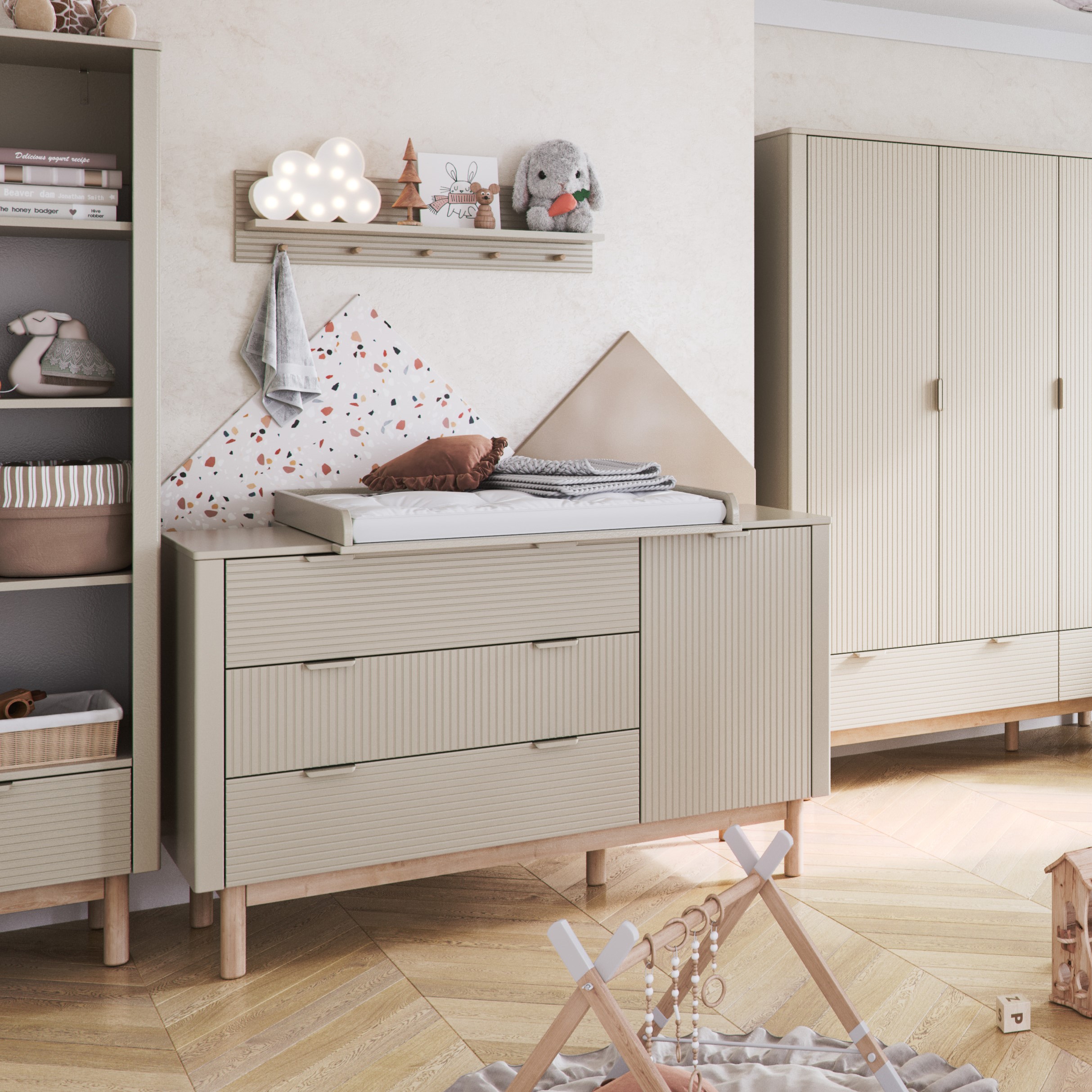 Τα άριστα υλικά κατασκευής προσφέρουν μοναδική ποιότητα και τελειώματα. Η συρταριέρα – αλλαξιέρα διαθέτει τρία συρτάρια με τεχνολογία Soft-closing και ταιριάζει σε κάθε βρεφικό υπνοδωμάτιο. Μπορείτε να αγοράσετε και να προσθέσετε την αφαιρούμενη αλλαξιέρα.