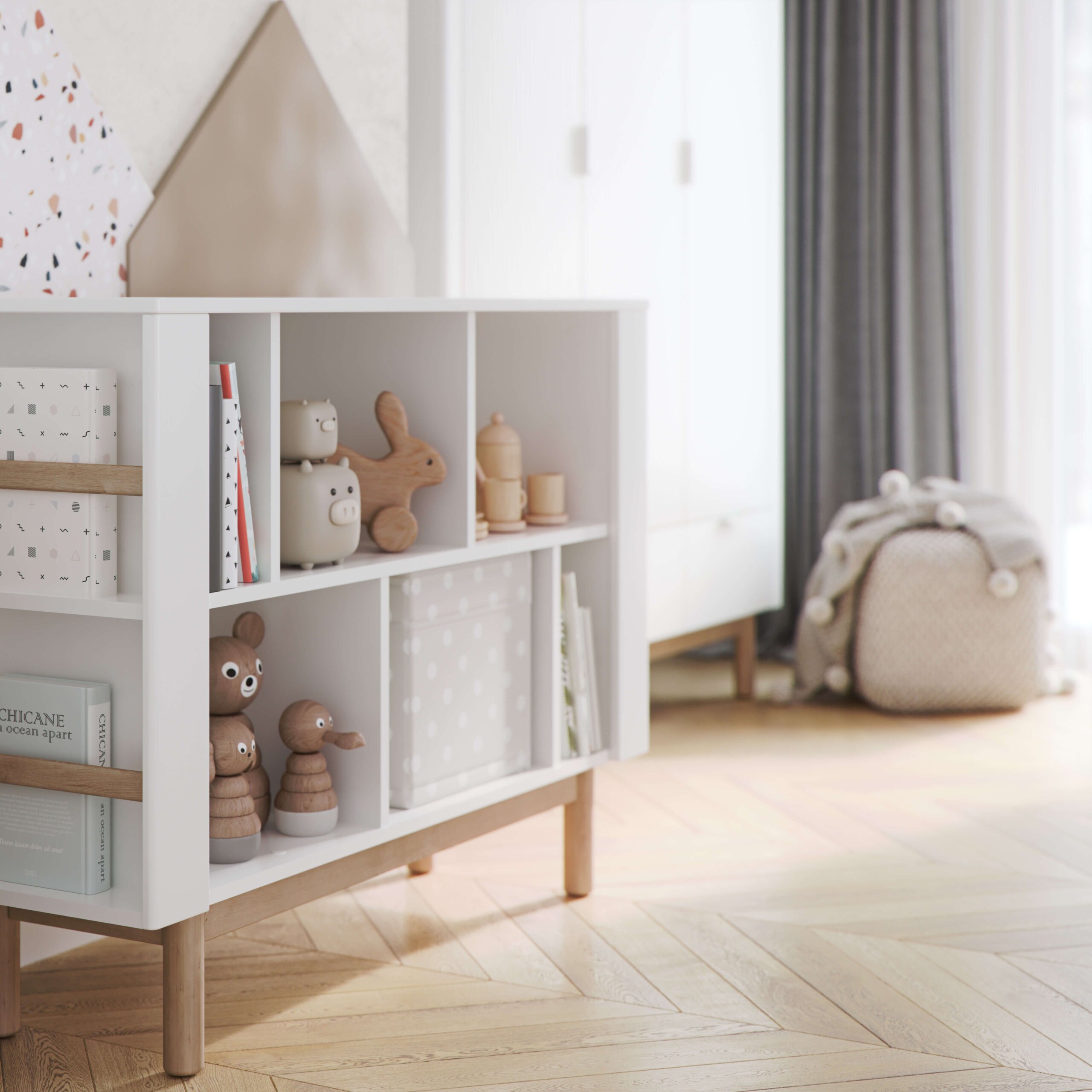 Η χαμηλή βιβλιοθήκη Miloo χταιριάζει σε κάθε χώρο του σπιτιού χάρη στο διαχρονικό της σχεδιασμό, καθώς διαθέτει δύο ακριανά ράφια για βιβλία και τέσσερα ράφια για μικροαντικείμενα. Διατίθεται σε δύο χρώματα, λευκό και σαμπανιζέ