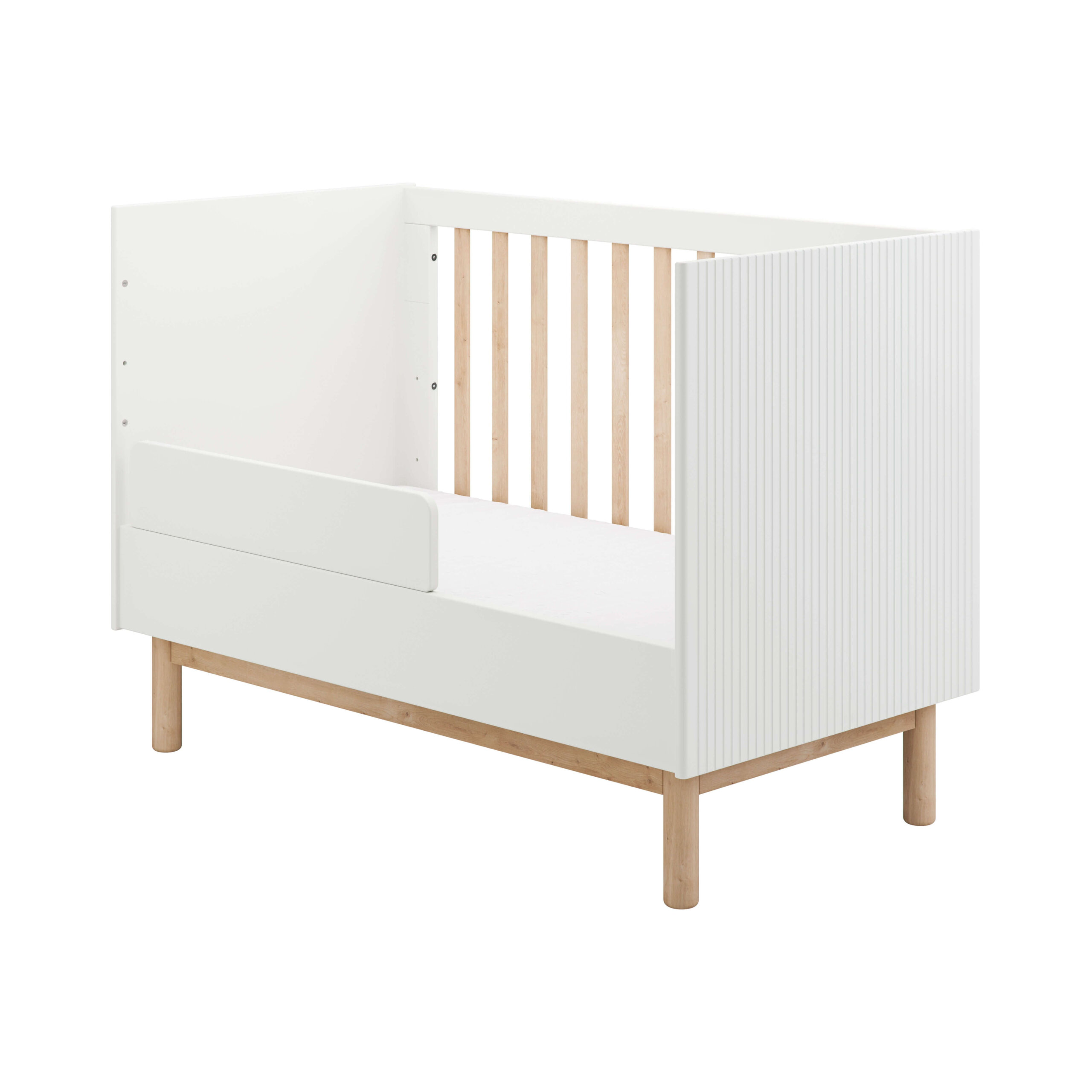 Το προστατευτικό κάγκελο Miloo σε λευκό και σαμπανιζέ χρώμα είναι σταθερό και προσφέρει απόλυτη ασφάλεια στο μικρότερο παιδί που χρειάζεται επιπλέον ασφάλεια. Είναι κατάλληλο για την Βρεφική Κούνια Miloo.
