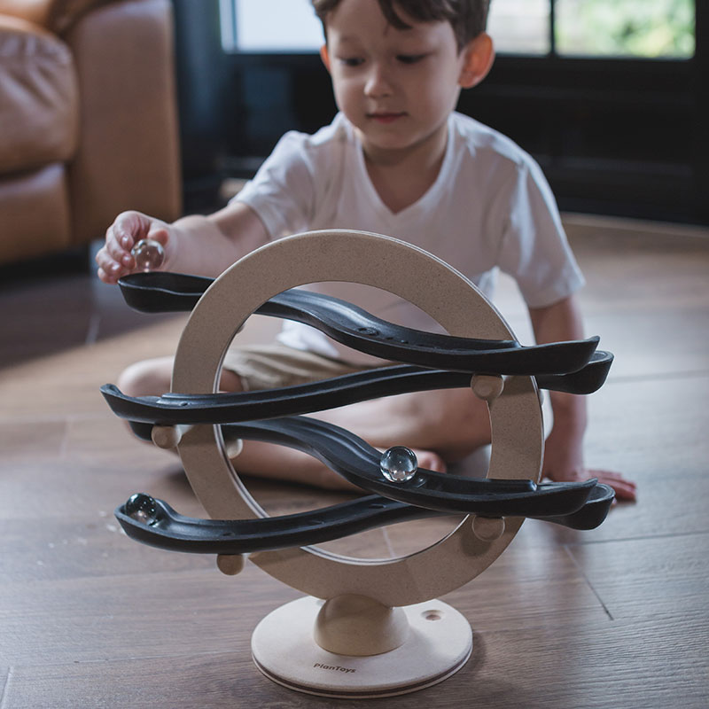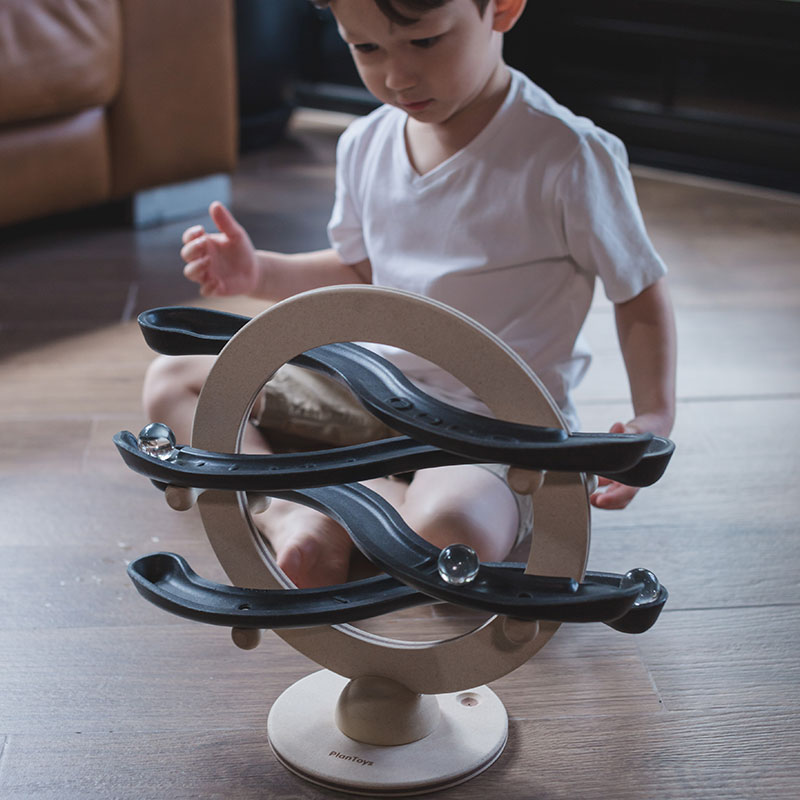 Παρακολουθήστε τις μπίλιες να κατεβαίνουν τη διαδρομή με έναν ευχάριστο κλικ κλακ ήχο. Η διαδρομή διαθέτει σαμαράκια για να διατηρείται η μπίλια στη σωστή πορεία. Οι αυλακώσεις στη βάση προορίζονται για να τοποθετούνται οι μπίλιες.
