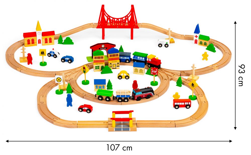 Το σετ αποτελείται από συνολικά 90 στοιχεία, μεταξύ άλλων: πίστες, θάμνους, δέντρα, κτίρια, αυτοκίνητα κ.λπ.