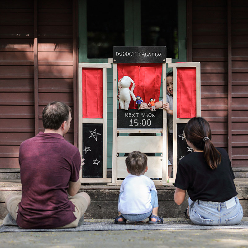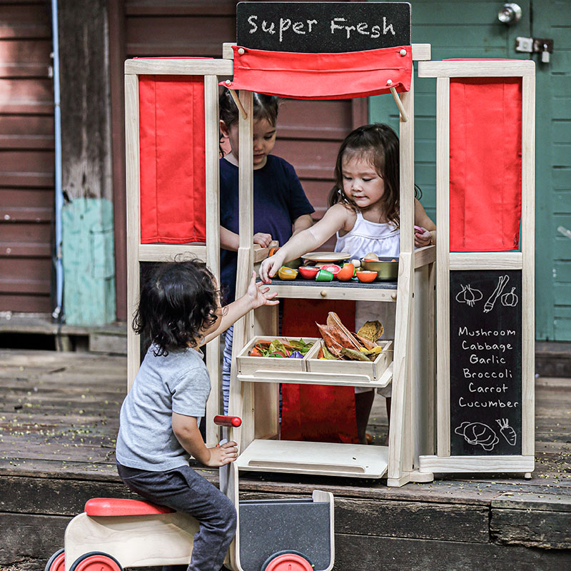 Καλώς ορίσατε στο νέο αγαπημένο σας κέντρο παιχνιδιού! Τα παιδιά μπορούν να χρησιμοποιήσουν αυτό το παιχνίδι ως ένα σκηνικό για αναπαραστατικό παιχνίδι, όπως για παράδειγμα ως κουζίνα, κατάστημα ή φούρνο ή για να παρουσιάσουν μια παράσταση κουκλοθεάτρου ή οτιδήποτε άλλο φανταστούν! Διαθέτει υφασμάτινη κουρτίνα, ώστε τα παιδιά να μπορούν εύκολα να το μετατρέψουν σε μικρό θέατρο.