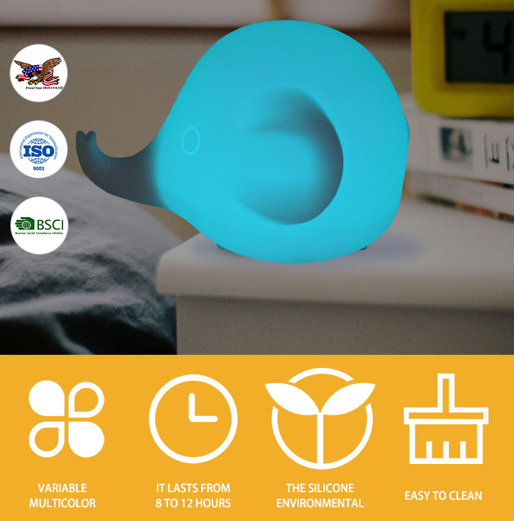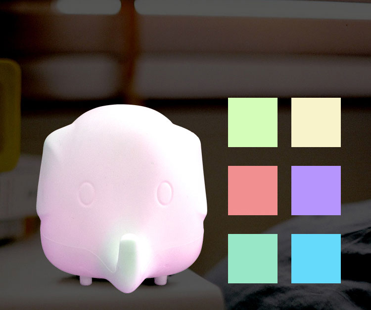 Αυτό το μοναδικό φωτάκι νυκτός από σιλικόνη θα χαρίσει τον πιο όμορφο και απαλό φωτισμό στο παιδικό σας δωμάτιο! Σε σχήμα ελεφαντάκι, αλλάζει πολλά χρώματα με το πάτημα ενός κουμπιού. Είναι ασφαλές να μείνει αναμμένο όλη τη νύχτα.